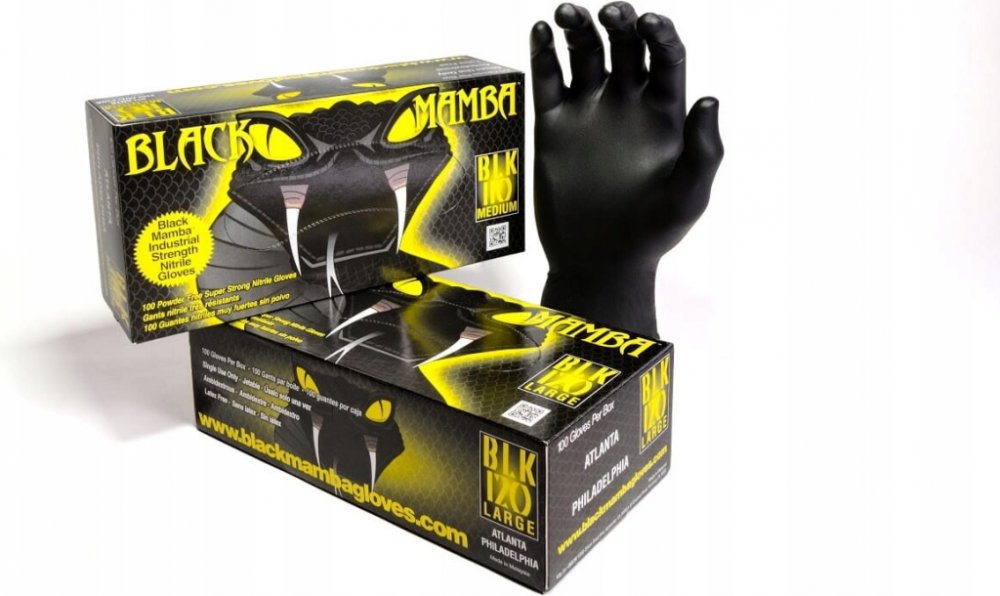 Ochranné rukavice Black Mamba jsou vyrobeny z unikátní směsi nitrilu a jsou navrženy tak, aby byly nejsilnější z dostupných na trhu. Silnější a pevnější než jakékoliv jiné nitrilové rukavice. Rukavice Black Mamba se vyznačují tloušťkou více než 0,6 mil. Třikrát odolnější proti propíchnutí a oděru než rukavice z latexu nebo vinylu.