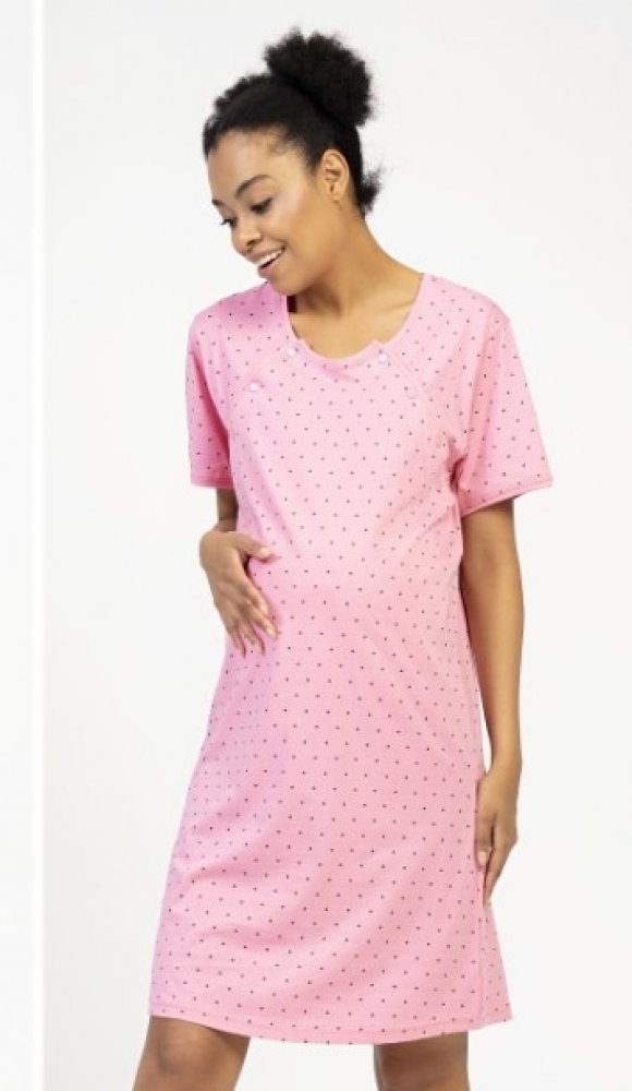 Ověřený model, pro pohodlné kojení, s krátkým rukávem a oboustranným rozepínáním na knoflíky.