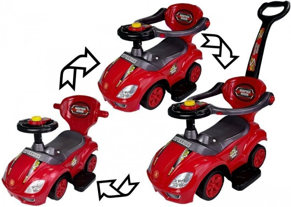 Dětské odrážedlo 3v1: možnost změny vozítka příjemné barvy lehká konstrukce "klakson" na volantu bezpeční konstrukce - bez ostrých hran možnost uschování věcí pod sedadlem velikostně pro děti od 1.5 roku certifikace CE, 3+ Funkce odrážedla: odrážedlo s vodící tyčí odrážedlo s postranním zabezpečením - pro menší děti odrážedlo bez postranního zabezpečení - pro větší děti Vybavení odrážedla: plastová karosérie vodící tyč postranní zabezpečení pro lepší sezení kola volant se kterým může dítě libovolně otáčet zadní opěradlo ozdobná kola Rozměry odrážedla: výška (i s vodící tyčí) 85 cm šířka 40 cm délka 60 cm rozměry balení 62.5 x 30 x 35.5 cm váha 3.95 kg