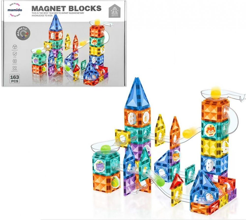 Barevné magnetické bloky různých tvarů se snadno spojují a umožňují stavbu vysokých věží, mostů či celých konstrukcí. Díky kuličkové dráze mohou děti sledovat, jak kuličky projíždějí trasami plnými zatáček, oblouků a překážek – hra se tak stává ještě napínavější a interaktivní.