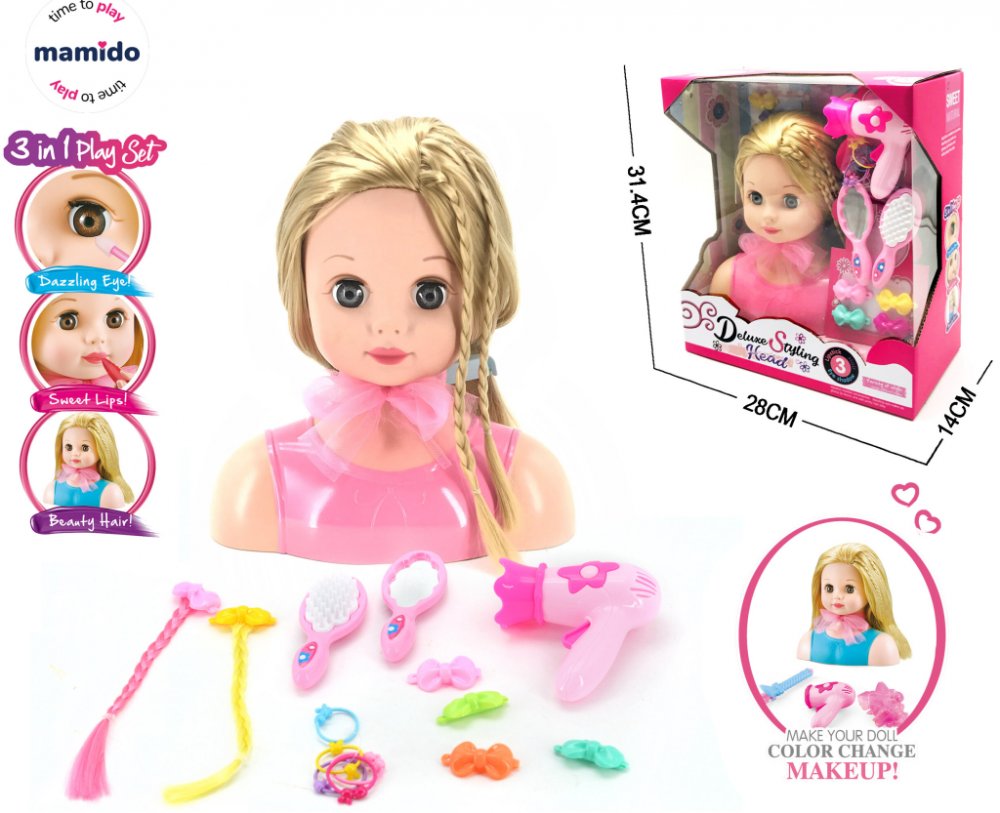 Mamido Česací hlava s doplňky a make-up růžová Blond MT1250