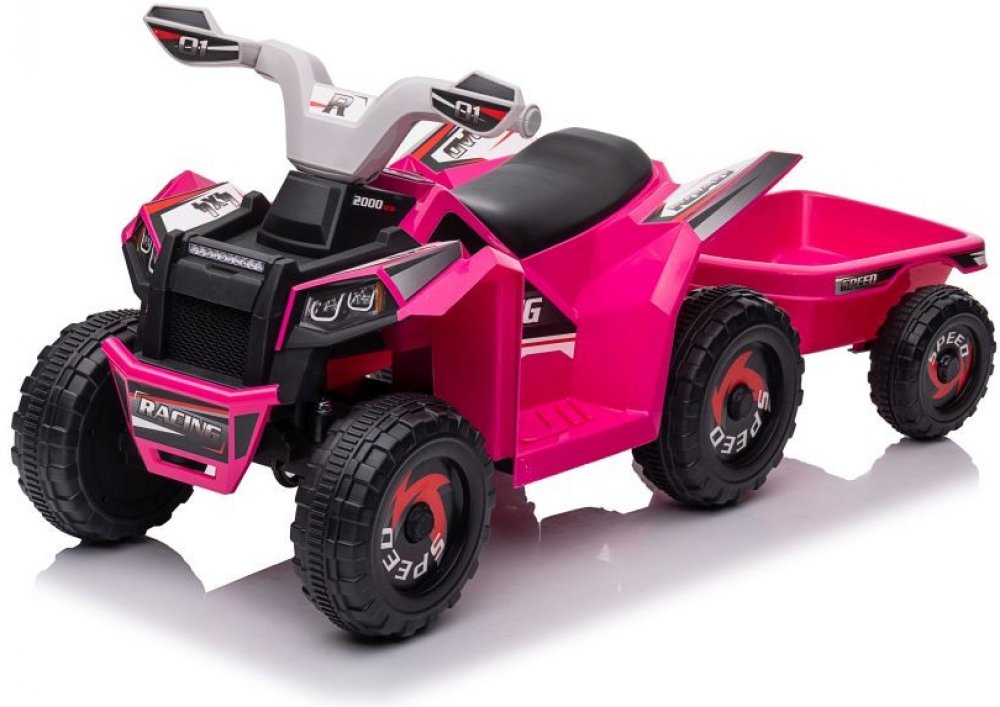 mamido Dětská elektrická čtyřkolka s přívěsem růžová