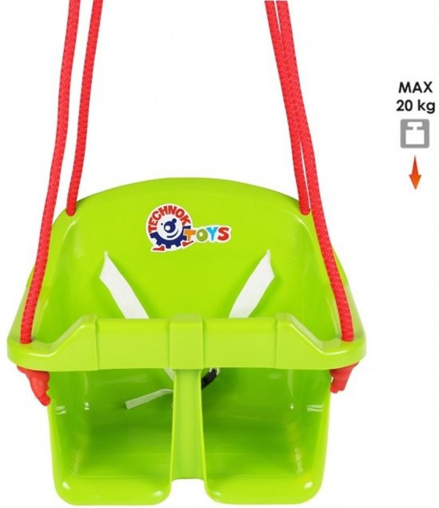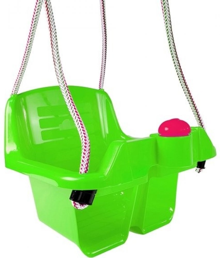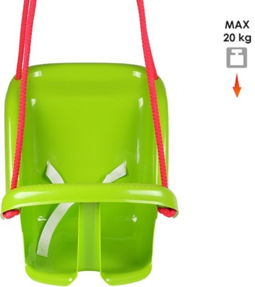 Houpačka je vyrobena z vysoce kvalitního plastu a vyznačuje se vynikající trvanlivostí a odolností vůči povětrnostním vlivům. houpačka je také vybavena bezpečnostním pásem s přezkami.