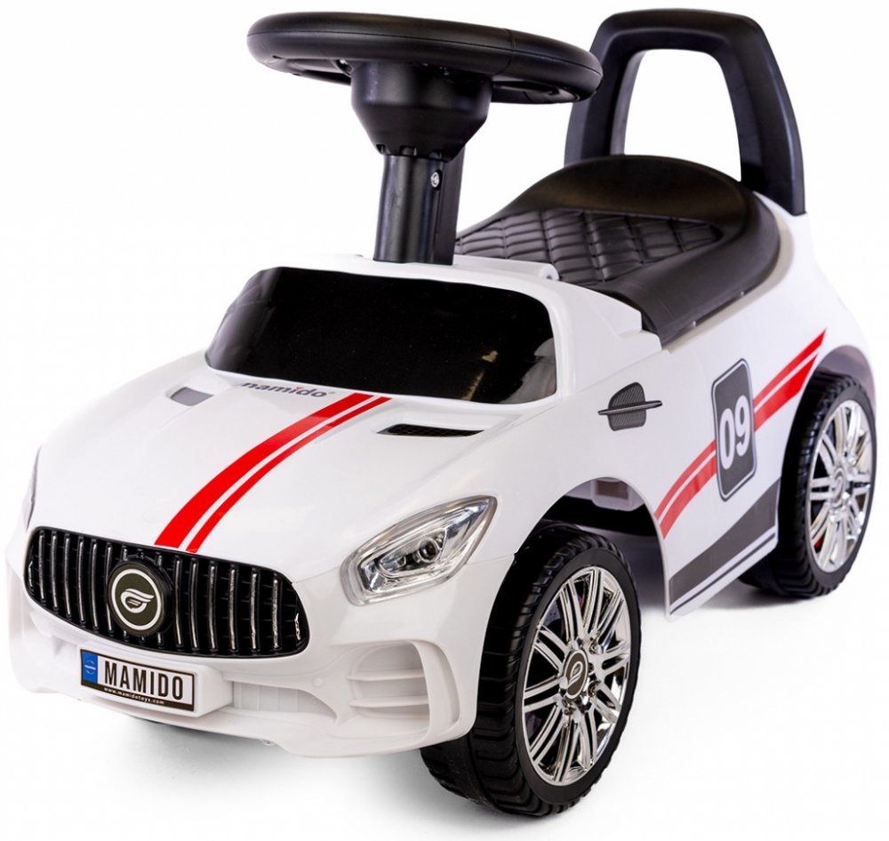Velkou výhodou odrážedla pro děti Mamido MT269 je multimediální volant a ukazatele rychlosti umístěné těsně pod ním. Interaktivní volant je vybaven tlačítky, která aktivují příjemné zvuky. Pět typů různých zvuků způsobí, že se vaše batole ve svém autě bude cítit jako skutečný řidič. Bílé odrážedlo je z velmi lehké konstrukce, což usnadňuje řídit. Ve velké sedačce je úložný prostor pro malé předmět...