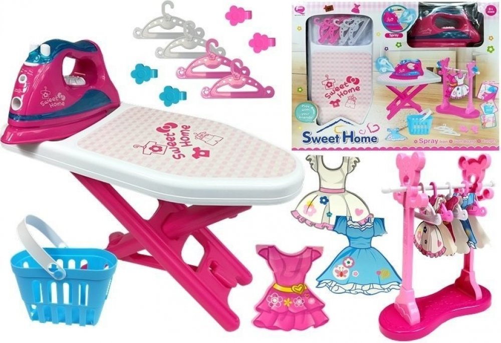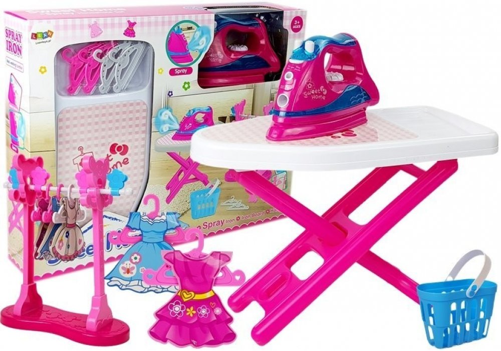 Vlastnosti žehličky: Zásobník na vodu Realisticky fungující ostřikovač Regulátor teploty se zvuky Zvuk vody uvnitř žehličky Obsah sady: Růžová žehlička na baterie Skládací žehlicí prkno Růžový stojan na oblečení 4 ramínka - 2 bílá, 2 růžová 3 šaty pro panenky hračky 4 klipy Košík na přenášení oblečení po žehlení Rozměry: Žehlička: 20 x 12 x 8 cm Žehlicí prkno: 40 x 20 x 30 cm Balení: 56,5 x 43 x 1...