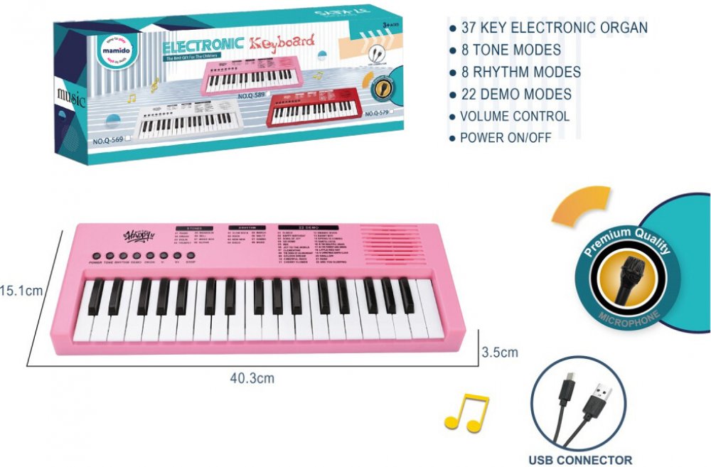 Mamido Dětský keyboard s mikrofonem 37 kláves růžový