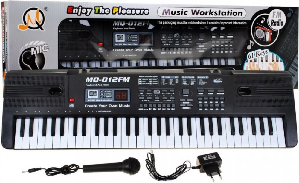 Keyboard je multifunkční hudebni nástroj, který rozvíjí představivost, smysl pro rytmus, motoriku rukou a sluch. Pomáhá také probudit vášeň pro hudbu u malých hudebních nadšenců. Přenosné klávesy mají mnoho funkcí, díky kterým zažijí děti hodně radosti. Hudební sada obsahuje také mikrofon a síťové napájení. Klávesy mají na výběr 2 programy výuky hraní. Výrobek je určen dětem starším 3 let a má certifikát CE. Funkce keyboardu: Tlačítko on/off Digitální display Tlačítka 16 tonů (např. piano, violoncello, jazzová kytara, trumpeta, saxofon, flétna, hoboj…) Tlačítka 10 rytmů (např. valc, tango, ballada, disco, country, rumba…) Tlačítko demo one a demo all (10 melodií) Rádio Akordy: single (jednotlivé akordy hrané spolu), finger (jednotlivé akordy hrané zvlášť) Regulace hlasitosti Regulace tempa Nahrávání Program Play Vstup pro mikrofon 1 reproduktor (na jedné ze stran je pouze imitace) Mikrofon Napájení keyboardu: Síťové (obsaženo v sadě) 6 x tužková baterie (není součástí sady) Rozměry keyboardu: Délka: 66 cm Šířka: 19 cm Výška: 6 cm