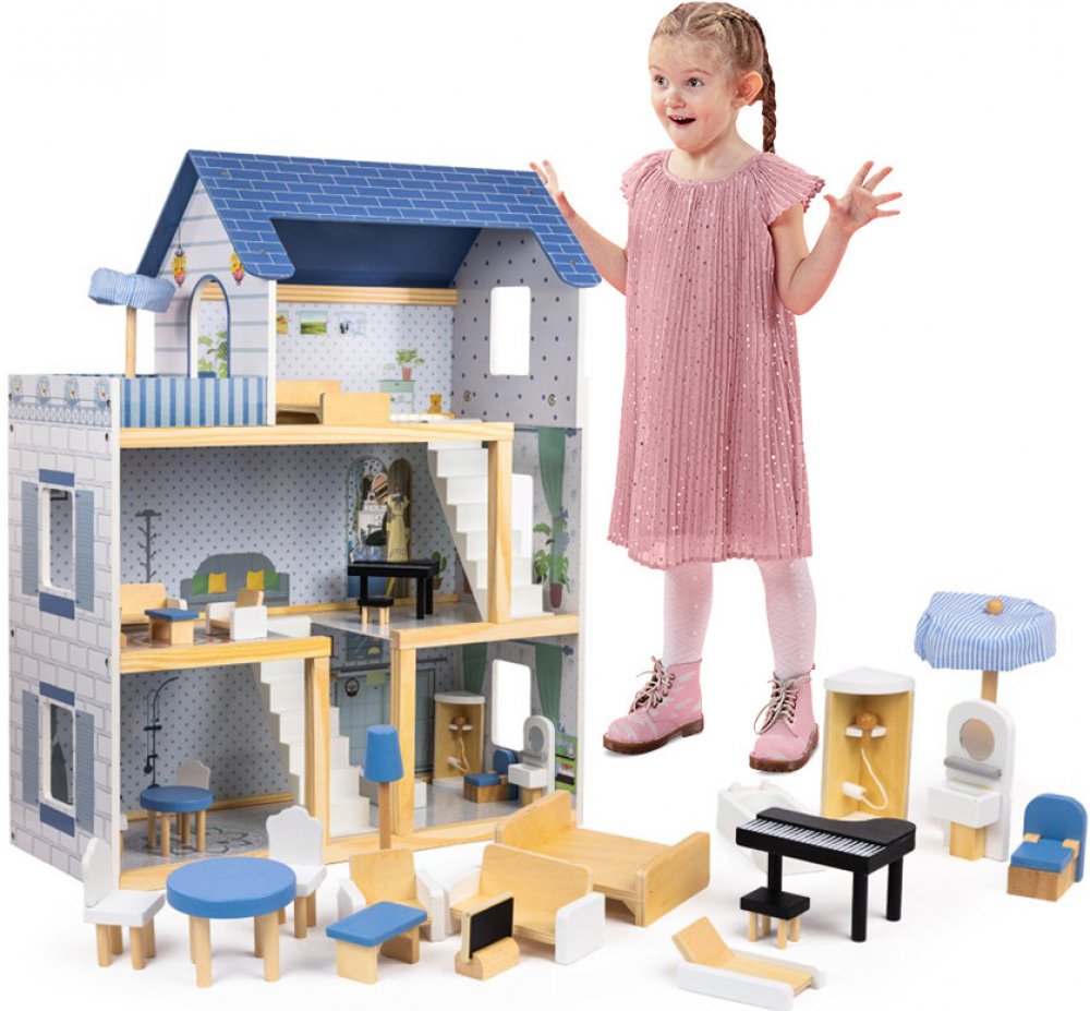 Objevte svět luxusu a elegance s naší Luxusní Panenkovou Vilou, která je vyrobena z prvotřídního MDF a masivního dřeva. Tento nádherný třípatrový domeček pro panenky přináší neuvěřitelně detailní design a pestré barvy, které okamžitě oživí každou dětskou místnost.