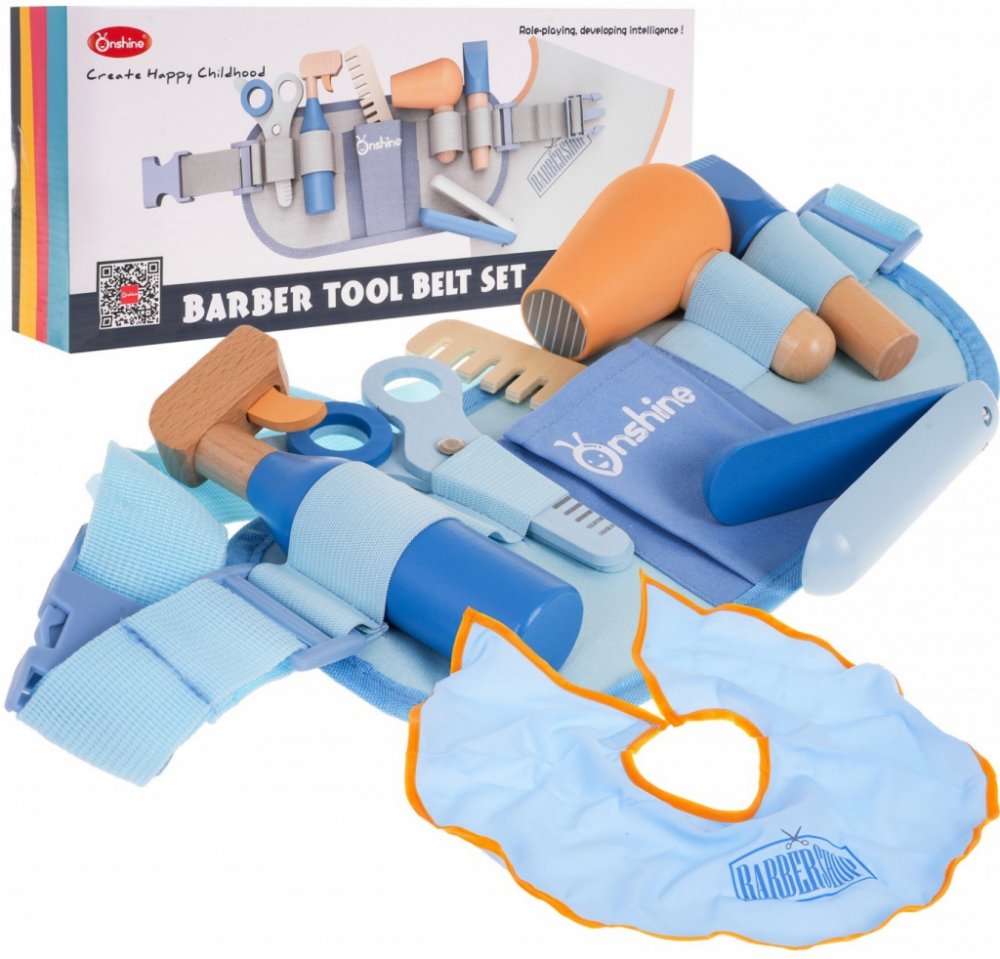 Dřevěná kadeřnická sada s nastavitelným pásem a doplňky je vhodná pro děti od 3 let. Všechny kadeřnické doplňky jsou vyrobeny ze dřeva, nemají ostré hrany, jsou bezpečné a pevné. Hra s touto sadou podnítí fantazii vašeho dítěte.