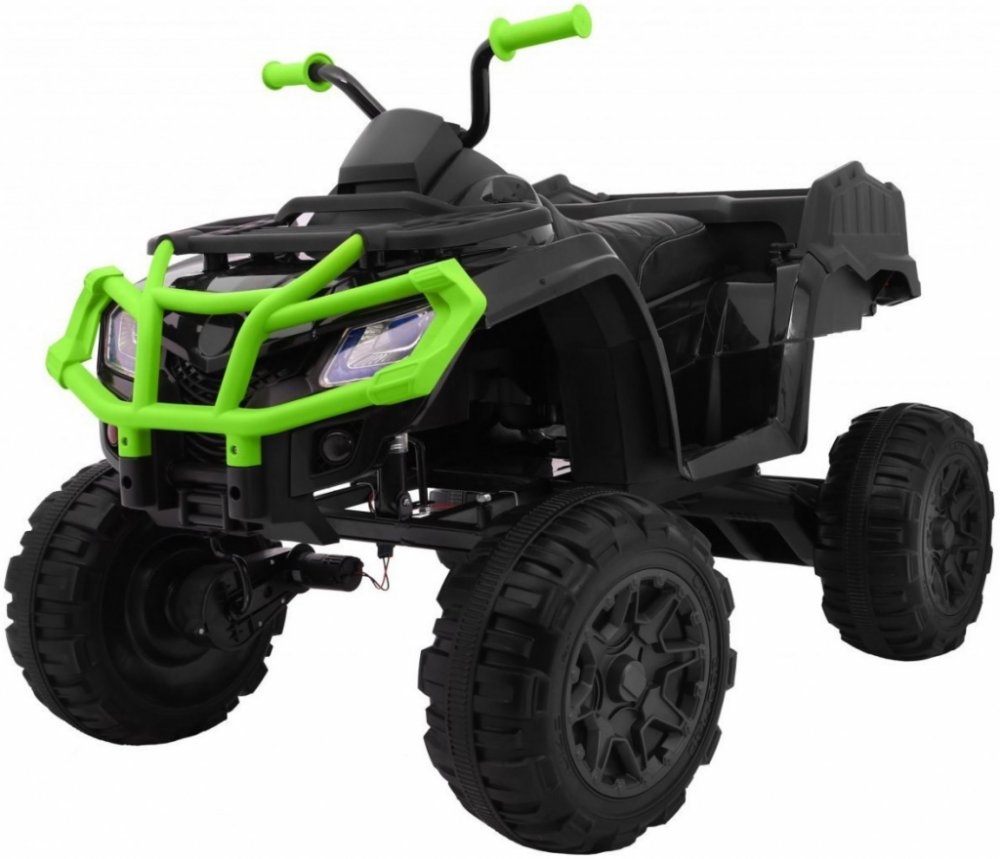 Čtyřkolka vás zaujme svým vybavením jako jsou přední LED světla a hudební panel, který má vstup pro MP3, SD kartu, AUX a USB, FM rádio a tlačítka s předehranými melodiem...