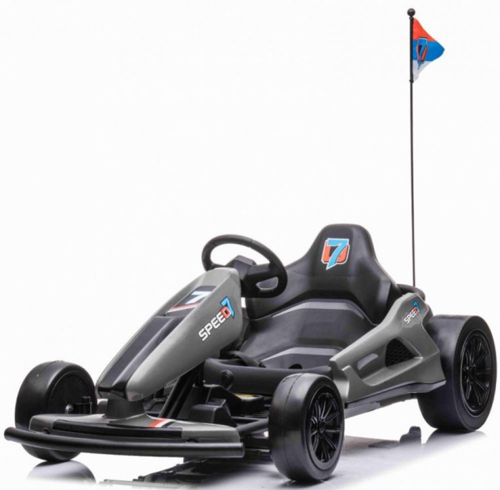 Dětská elektrická motokára s baterií o kapacitě 24V 7Ah a dvěma motory s výkonem 150W nesmí chybět v žádné dětské garáži. Motokára je vybavena sportovně tvarovanou sedačku z ekologické kůže. Motokára má délku 130 cm, šířku 75 cm, výšku 53 cm a nosnost 60 kg, proto je určena pro větší děti. Přední kola jsou vyrobena z EVA pěny. Zadní kola jsou vyrobena z plastu, díky této vlastnosti může motokára použít svou funkci driftování. Technické parametry: Baterie: 24V 7Ah Výkon: 2x150W Délka motokáry: 130 cm Šířka motokáry: 75 cm Výška motokáry: 53 cm Hloubka sedadla: 23 cm Šířka sedačka: 39 cm Výška sedačka: 43 cm Přední kola: 21 x 8 cm Zadní kola: 28 x 10 cm Hmotnost motokáry: 30 kg Maximální nosnost: 60 kg Výška podvozku od země: 8 cm Rozměry balení: 120 x 59 x 33 cm Hmotnost balení: 33 kg Pohon: vpřed/vzad, rychle/pomalu Specifikace: Sedadlo z ekologické kůže Přední kola vyrobena z EVA pěny Zadní kola vyrobena z plastu Funkce driftování
