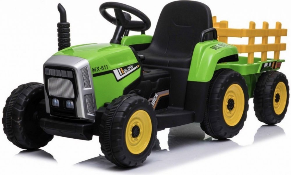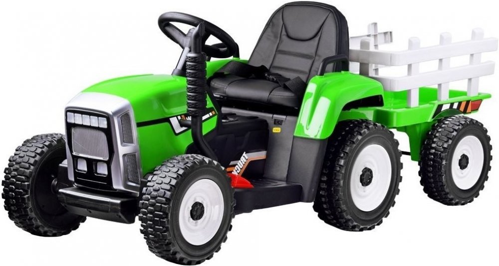 Dětský elektrický traktor s vlečkou T2 udělá radost každému malému klukovi nebo holčičce od 3 let. Všechny potřebných věcí, jako třeba batůžek, hračky nebo zahradní náčiní, se krásně vejdou do vlečky, kterou lze odpojit. Otevřený traktor, se kterým se dítě může setkat třeba na statku, má černé kožené sedadlo, otočný volant, ovládací tlačítka, hudební panel se vstupem USB, MP3 a konektivitu Bluetoo...