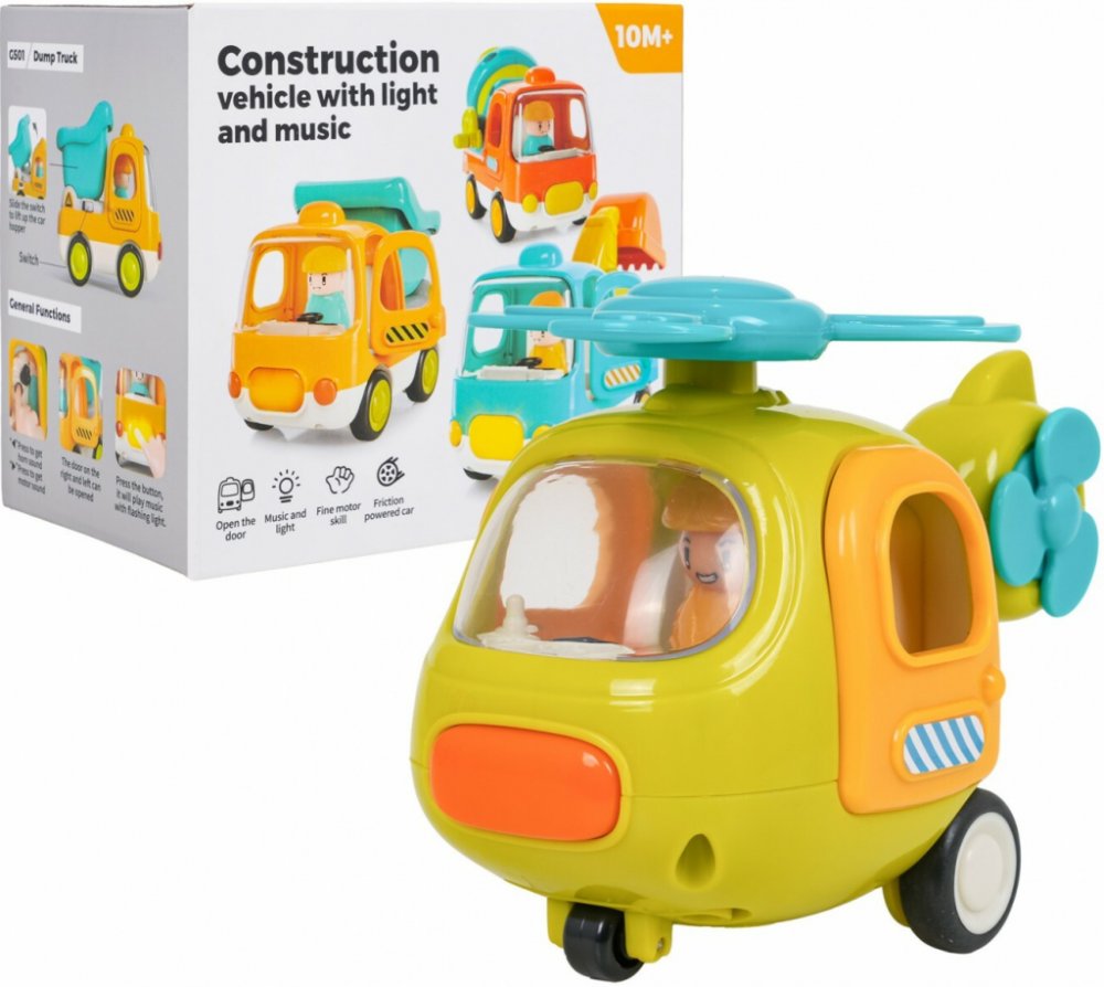 Interaktivní vrtulník se zvukovými a světelnými efekty pro děti od deseti měsíců věku. Hračka je vyrobena z odolného a bezpečného plastu, nemá ostré hrany a vydrží i tu nejenergičtější hru. Živé barvy přitahují pozornost dítěte a vybízejí k hraní. Zvukové a světelné efekty stimulují smysly dítěte a dodávají hře na realističnosti. Kolečka se snadno pohybují po podlaze a dveře a vrtule helikoptéry j...