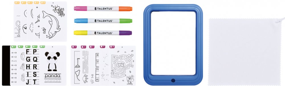 lupilu® Kouzelná tabulka SZT 3 A1 Vlastnosti 7 LED barev a 2 světelné režimy Hravým způsobem rozvíjí kreativitu, fantazii a ochotu učit se 3 dvojitá pera s celkem 6 barvami 15 oboustranných karet s 30 různými motivy k samostatnému domalování Snadné čištění díky dodanému čisticímu hadříku Výklopný stojan 2 přísavky pro upevnění Černá karta jako pozadí; aby motivy zářily Včetně baterií (3x 1,5 V typ Aaa, Lr03) Doba provozu: cca 15 hod. Rozměry: cca 26,2 x 19 x 2,5 cm (D x Š x V) Charakteristika produktu ;} Počet stran: 15 oboustranných karet s 30 různými motivy Téma / motiv: svět zvířat Doporučený věk: pro děti od 3 let Obsah balení: Kouzelná tabulka, dvojité fixy, oboustranné karty, čisticí hadřík; přísavky; černá karta jako pozadí; baterie Upozornění: Používání tohoto výrobku dětmi by mělo být pod dohledem dospělé osoby. Zabraňte kontaktu s očima a pokožkou. Nepolykejte. Pokožku umyjte vodou a mýdlem; abyste odstranili případné nečistoty. Nevhodné pro děti do 3 let!