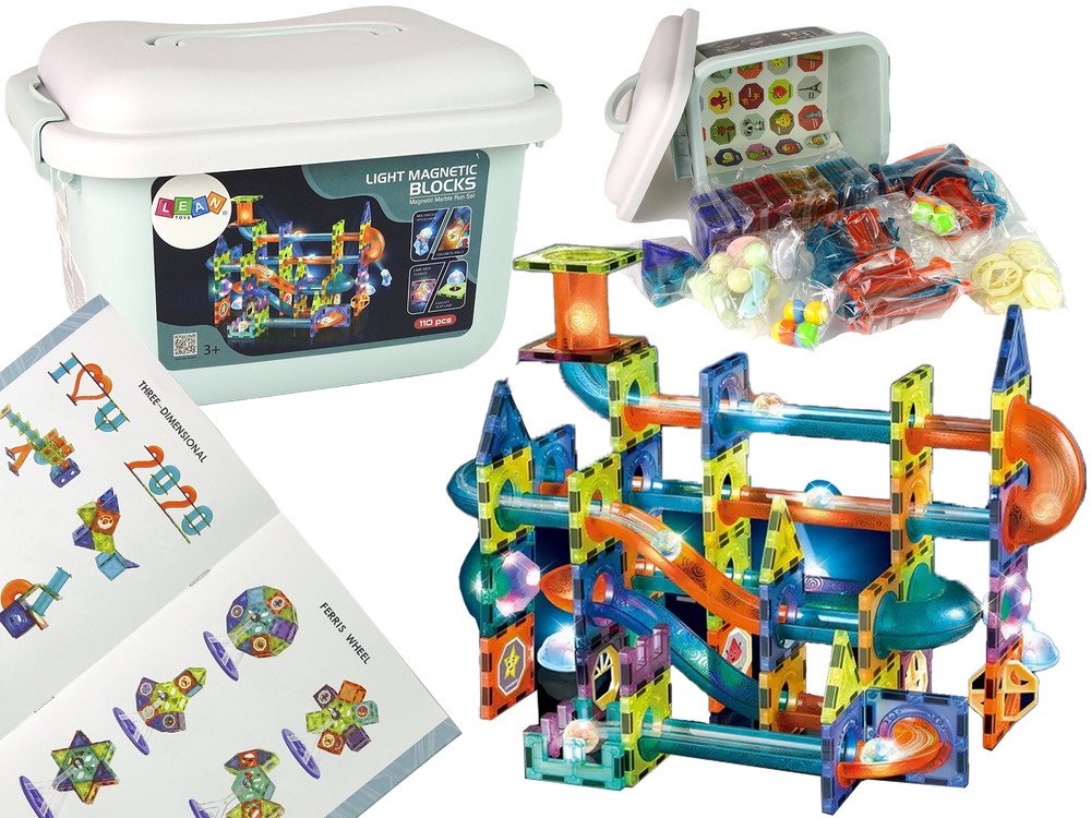 Postavte si vlastní dobrodružnou kuličkovou dráhu! Tato stavebnice s 110 díly nabízí nespočet možností, jak sestavit zábavné tratě, po kterých se kuličky kutálejí z jednoho patra do druhého. Děti si užijí napětí, kreativitu i radost ze hry.