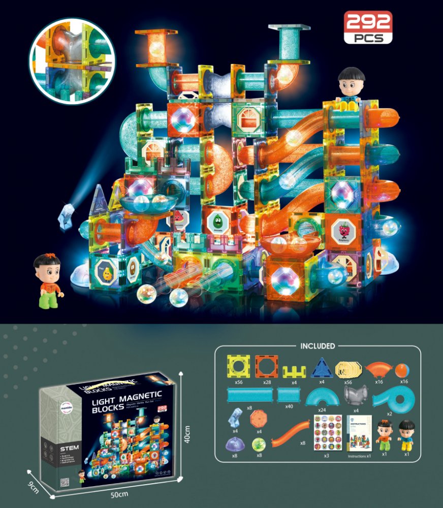 Mamido Magnetická svítící kuličková dráha 292 dílů XXL