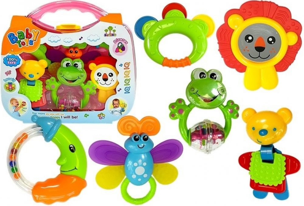 Chrastítka rozvíjí jednu ze základních dovedností, jako je rozpoznávání zvuků a tvarů, koordinace ruka-oko a zlepší zrak a sluch. Hračky zaujmou také veselými tvary a barvami. Vašemu batoleti se určitě chrastítka zalíbí. Dítě si může vybrat žábu, medvídka, lva, motýla, měsíc nebo klasické tvary.