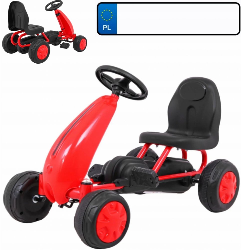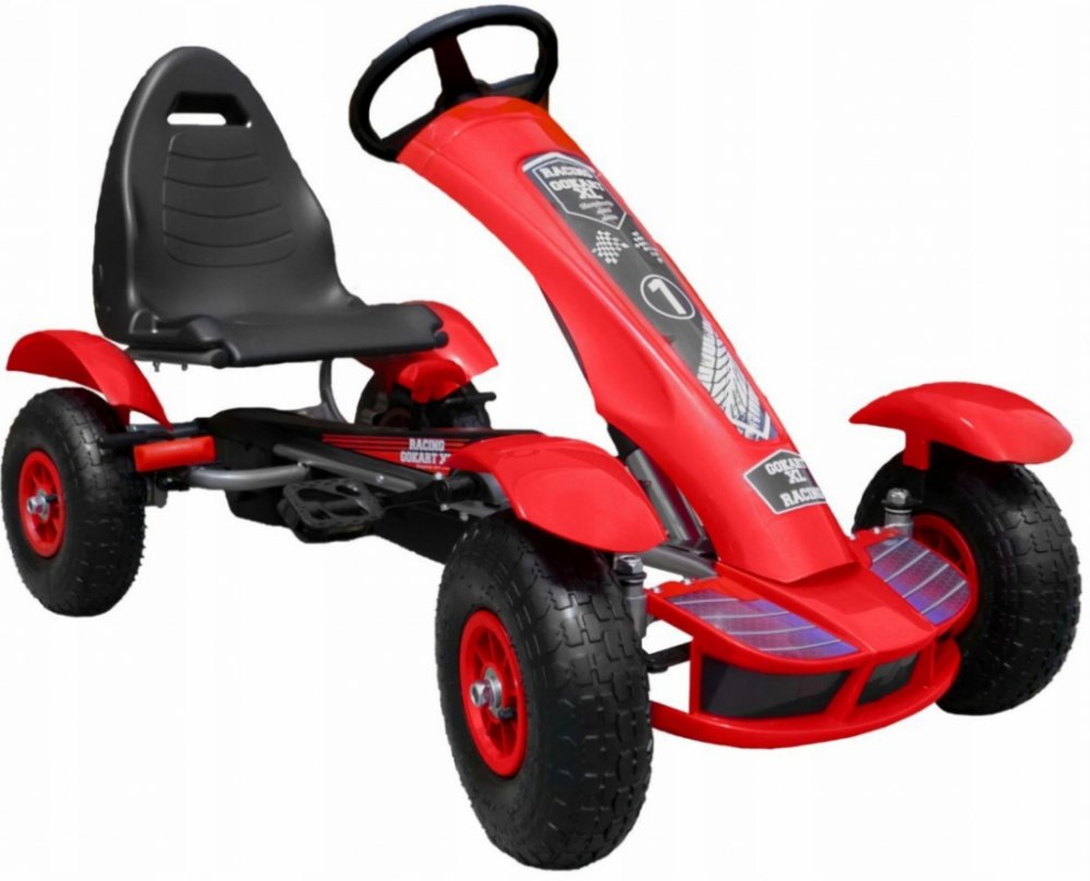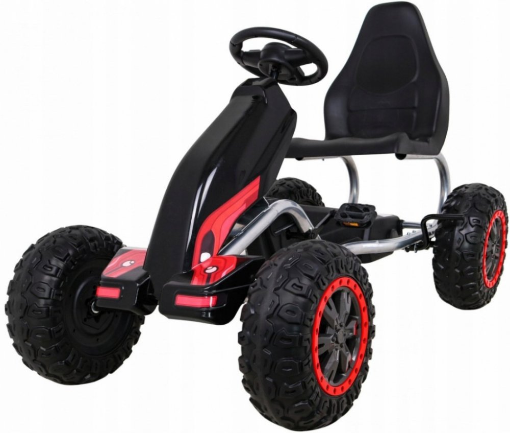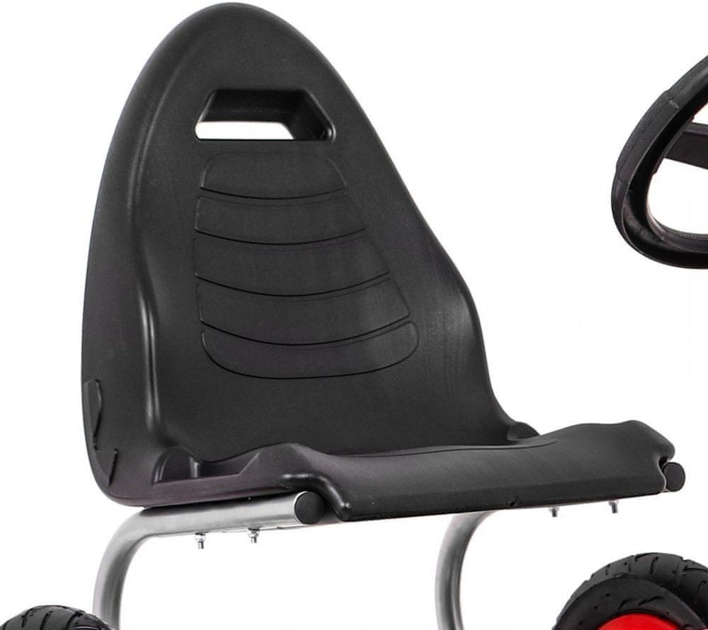 Dětská šlapací motokára s nafukovacími koly byla vyrobena z lehké kovové konstrukce s doplňky z umělé hmoty. Je vybavena nafukovacími gumovými koly a pohodlným, tvarovaným sedákem, který zajistí pohodlí při jízdě.