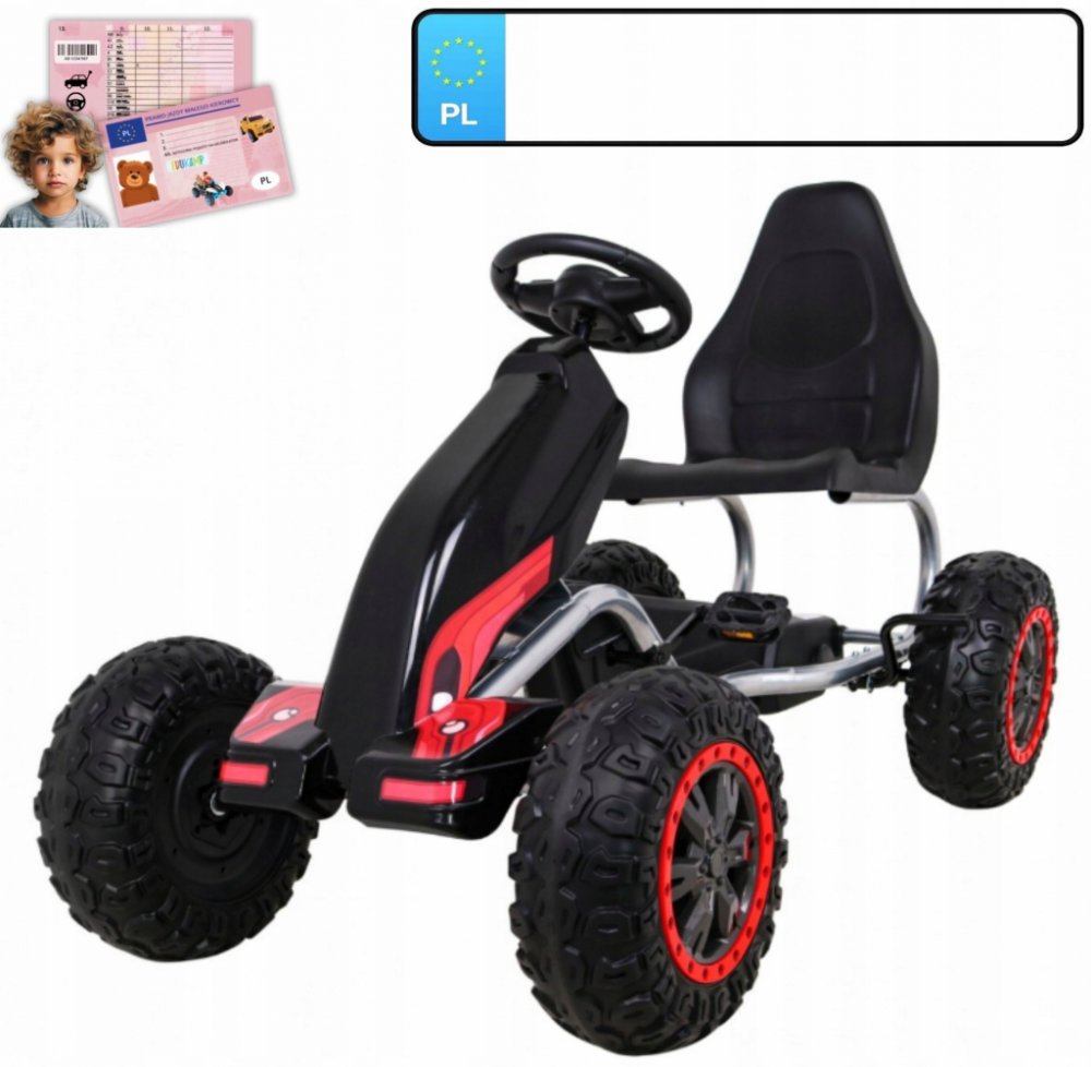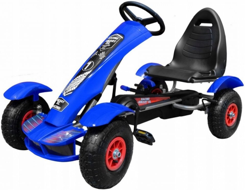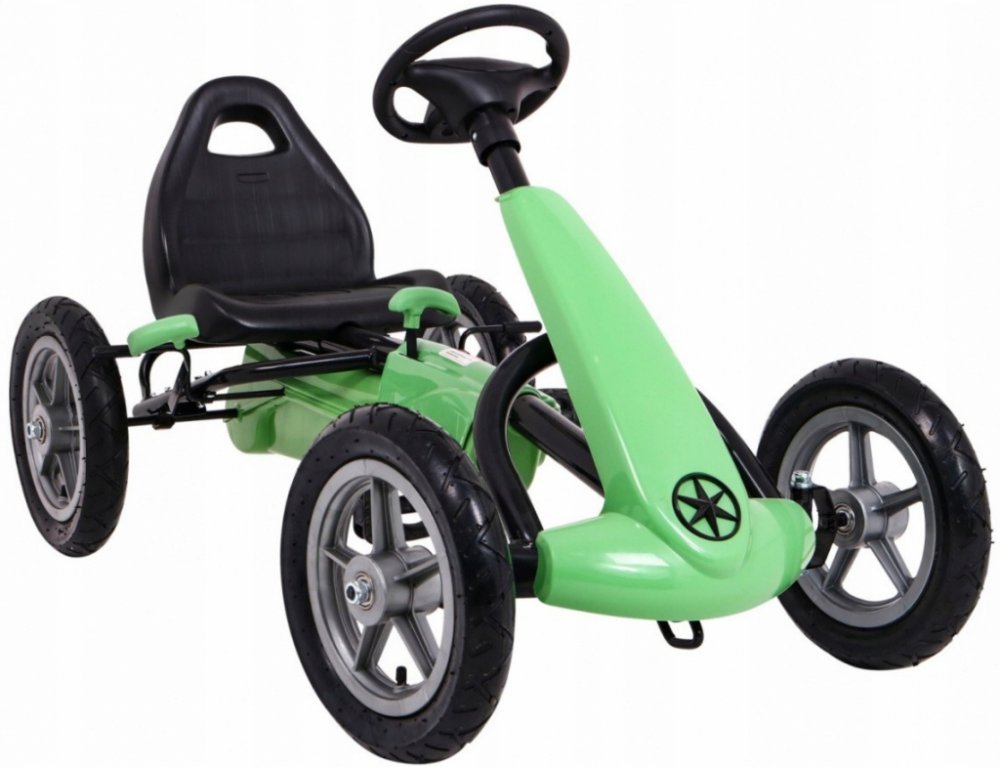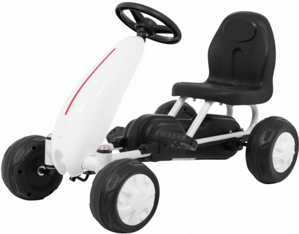 Dětská šlapací motokára s nafukovacími koly byla vyrobena z lehké kovové konstrukce s doplňky z umělé hmoty. Je vybavena nafukovacími gumovými koly a pohodlným, tvarovaným sedákem, který zajistí pohodlí při jízdě.