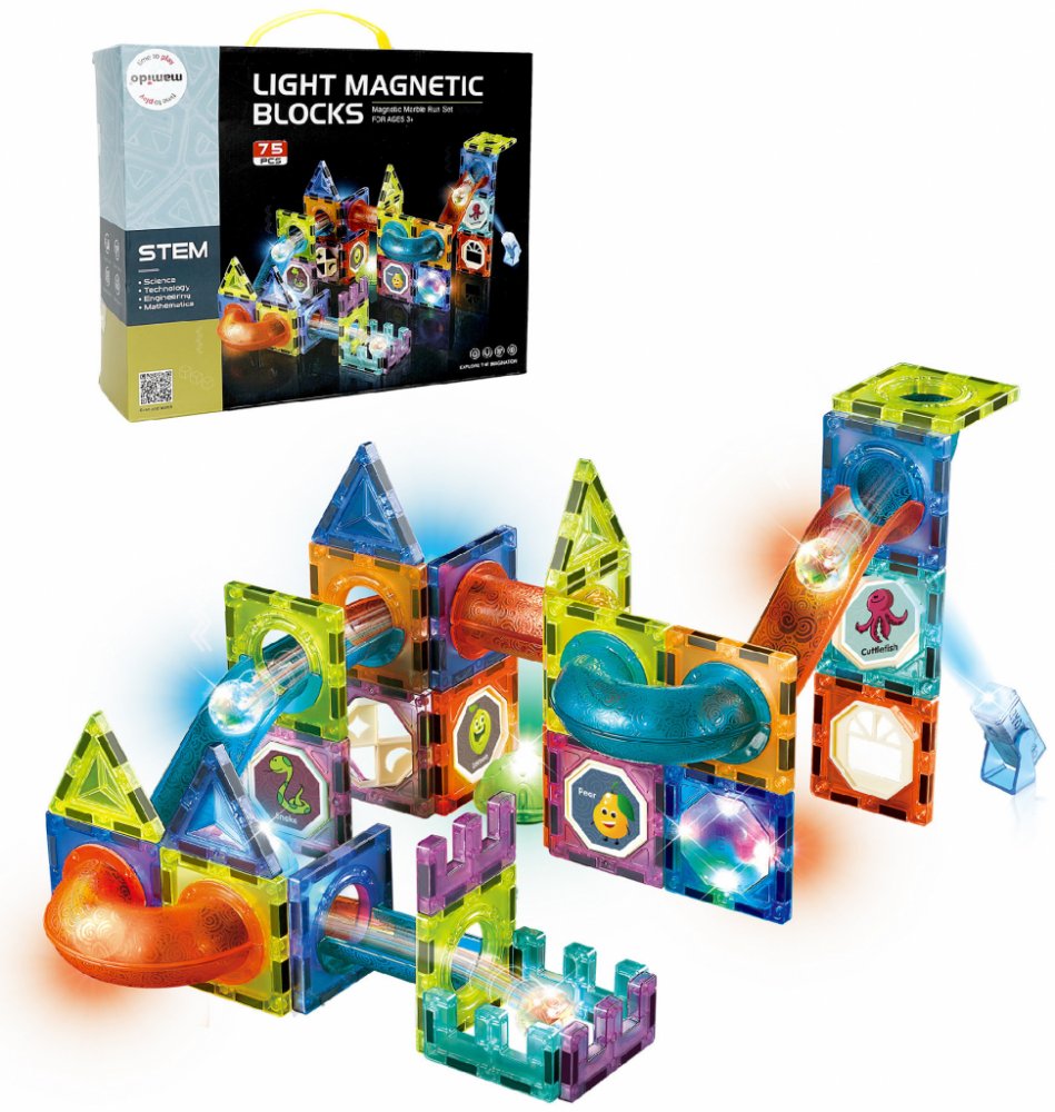 Magnetická svítící stavebnice Mamido zajistí dětem od 3 let parádní zábavu a současně rozvíjí jejich kreativitu a prostorovou představivost. Obsahuje 75 dílů, pomocí nichž děti vytvoří kuličkovou dráhu s libovolným rozložením. Mezi dílky nechybí svítící kuličky a svítící prvky, které se postarají o působivý efekt ve tmě, kuličky a magnetické bloky, díky nimž se dílky snadno a rychle propojí. Součá...