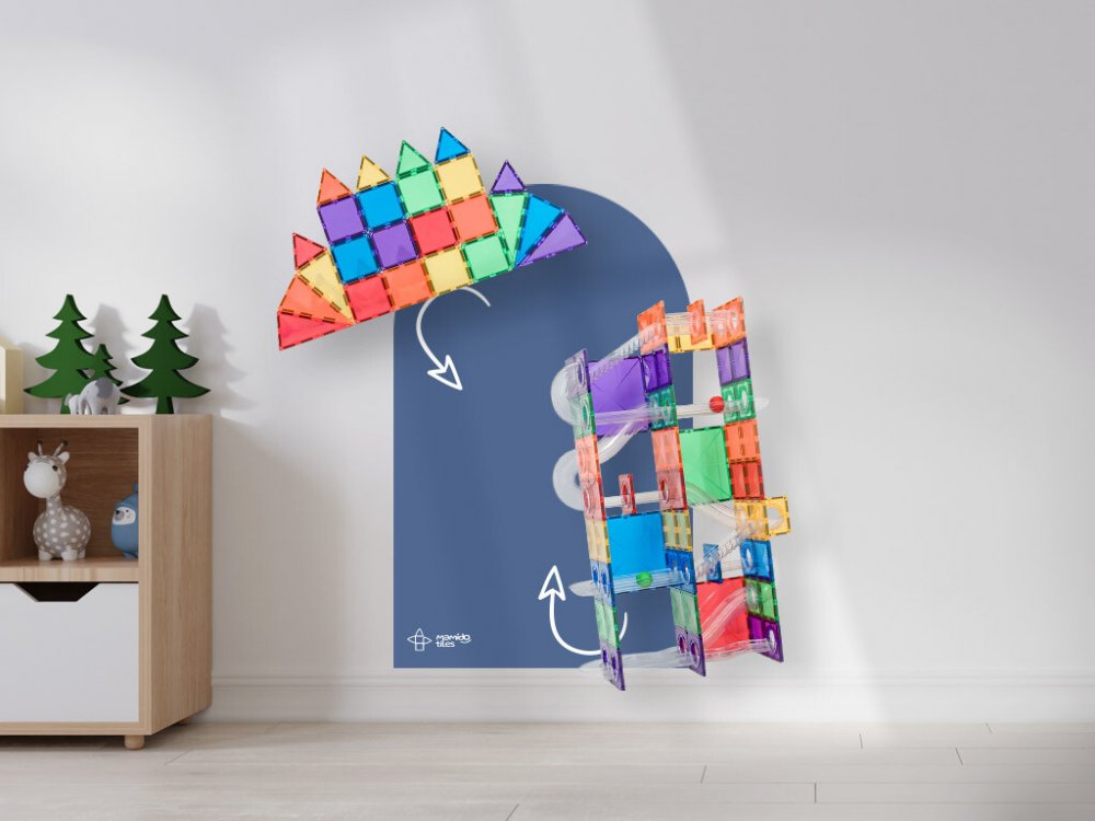 Magnetická tapeta Mamido Tiles přinese dětem ještě více zábavy, tvoření a učení díky magnetické síle a snadné instalaci. Stačí ji nalepit na hladkou stěnu a během okamžiku vznikne interaktivní prostor pro magnetky, kreslení křídou, malování omyvatelnými barvami i psaní fixem na tabule.
