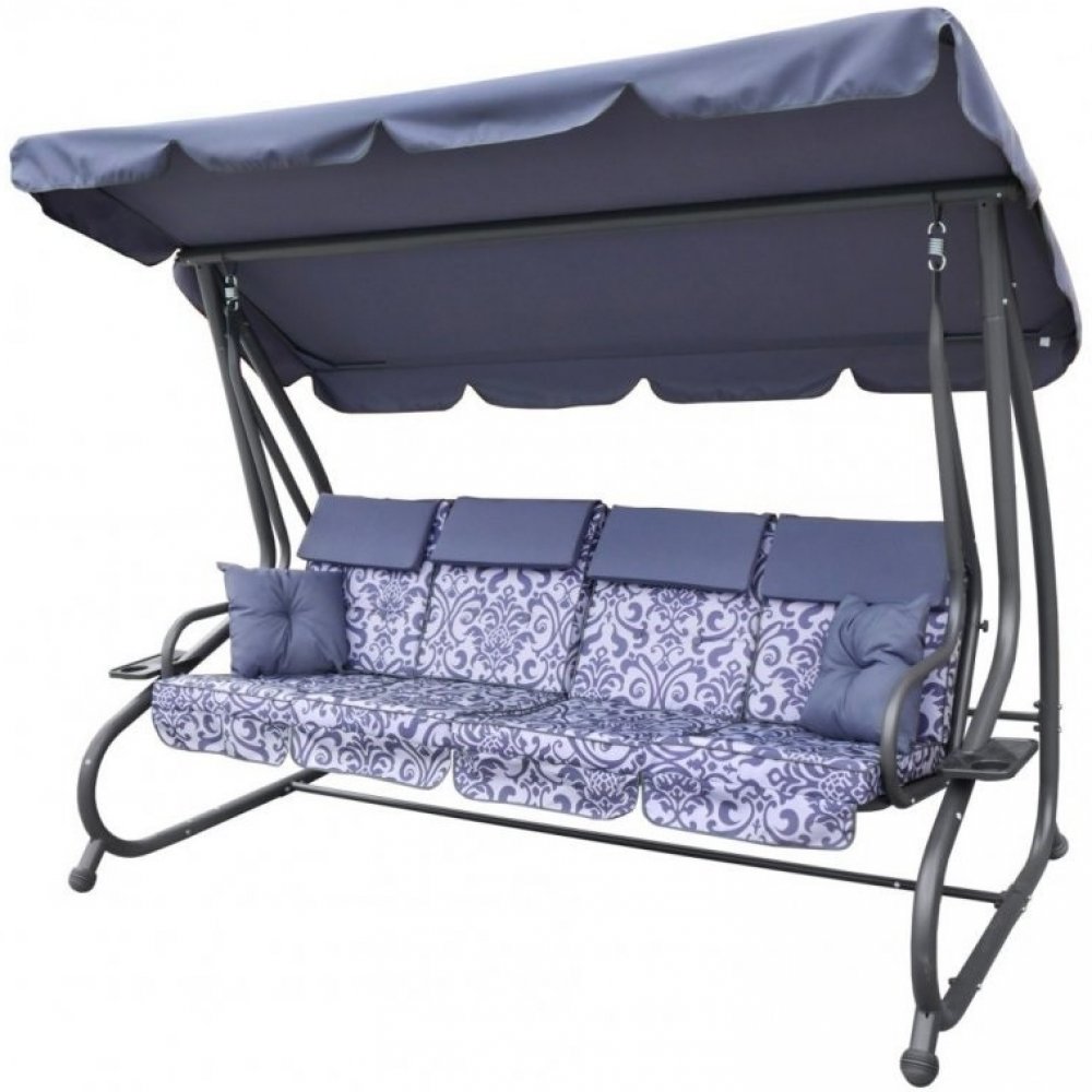 Zahradní houpačka se sklopným sedákem a regulovatelnou stříškou pro 4 osoby.Podsedák je vyroben z kvalitního síťovaného materiálu s možností 2v1. Houpačku tedy lze jednoduše upravit do lehátka nebo otočit strany opěradel. Síťovina je určena pro venkovní použití díky své vysoké odolnosti vůči nepříznivým klimatickým změnám. Síťovina je extrémně pružná a odolná proti roztažení, což navíc ovlivňuje pohodlí při používání a samotný materiál se nedeformuje. Vlastnosti a funkce:- vícestupňové plynulé nastavení stříšky, - sklopný pohodlný podsedák, který lze použít k sezení nebo ležení, - 4 kusy matrace- 2 stojany na pití,- robustní ocelová konstrukce,- vysoce kvalitní svary, - vysoká odolnost proti klimatickým vlivům, - masivní protiskluzová patka z gumy na koncích nohou, - snadnost čištění, - maximální zatížení 300 kg, Rozměry: Vnější rozměry: - šířka cca 240 cm, - hloubka cca 114 cm, - výška střechy v hlavní části cca 168 cm, - hmotnost cca 46 kg, Podsedák:- výška opěrky bez matrace cca 50 cm, - hloubka sedadla bez matrace cca 48 cm, - délka sedadla bez rámu cca 193 cm, - rozložená šířka sedadla 100 cm, Stříška:- délka cca 230 cm, - šířka cca 117 cm, Polštáře na podsedák (matrace):- délka cca 48 cm, - sedák cca 48 cm, - šířka cca 51 cm, - rozložená šířka cca 101 cm, Balení se skládá ze dvou balíku: - 230x57x16 cm 28,5 kg- 200x57x16 cm 23,5 kg