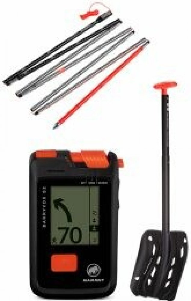 Svatá trojice pro profíky. Tento lavinový set od Mammut. Teleskopická sonda Probe 280 speed lock, lavinový vyhledávač Barryvox S2 a teleskopická lopata Alugator Pro Light. Barryvox Package je trojka navržená pro rychlou a efektivní záchranu.
