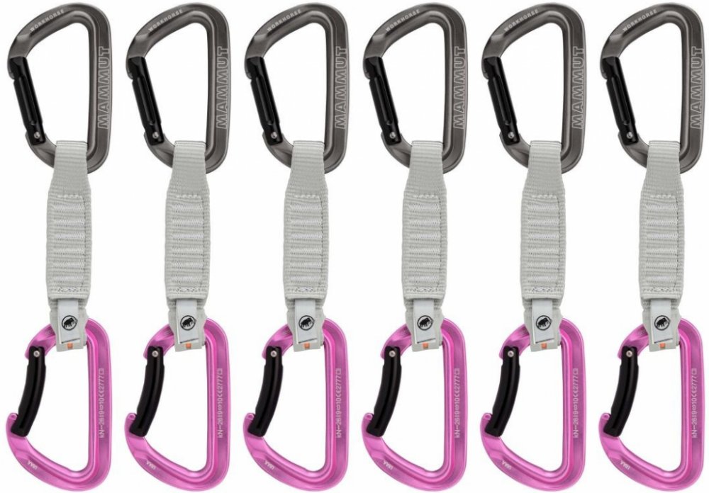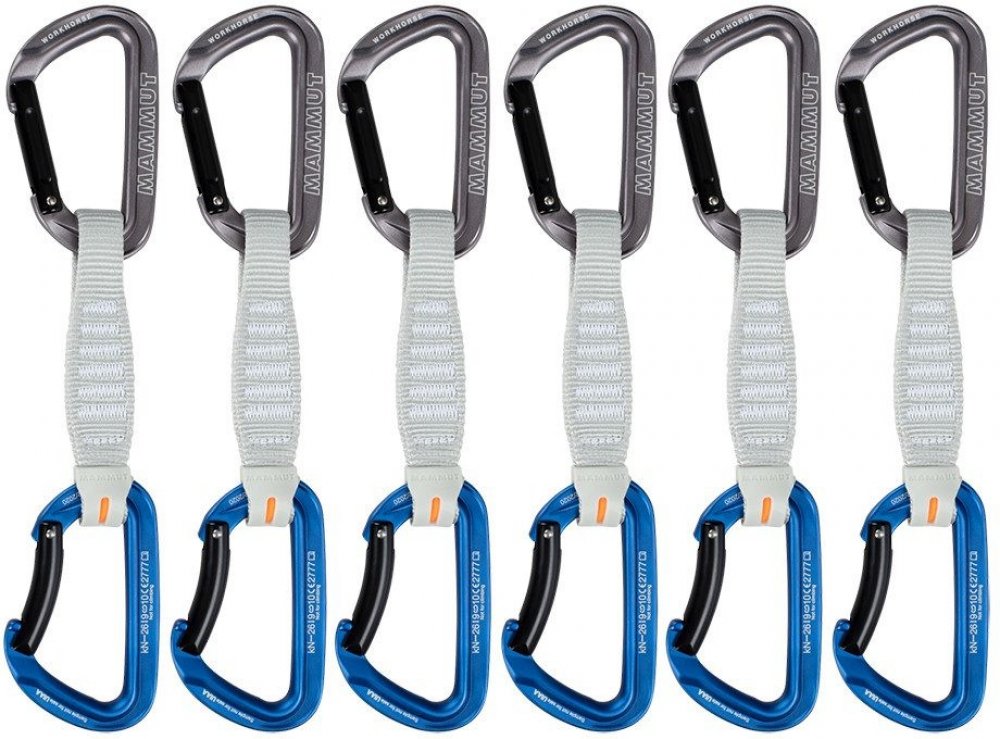 Set šesti expresek Mammut. Expresky Workhorse svou festovní konstrukcí karabin vzbuzují opravdu důvěru a určitě je oceníte ve všech skalních oblastech, které neoplívají hustým jištěním. Expresky mají standartní a běžně používanou délku pásku 12 cm. Keylock západka, gumička fixující polohu karabiny, zesílený pásek expresky.