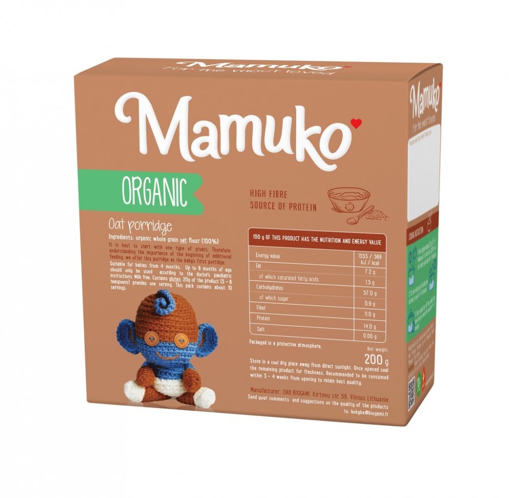Mamuko dětská nemléčná hnědá bio kaše oves Bio ovesná kaše Mamuko je speciálně vytvořená pro kojence od 4 měsíců. Nabízí výživný základ bohatý na vlákninu, bílkoviny a rostlinné tuky, které podporují zdravé trávení, vývoj svalů a zdraví kostí. Oves, použitý při výrobě, pochází ze 100% organických celozrnných zrn a díky tomu si zachovává více minerálů, vitamínů a vlákniny. Tato kombinace poskytuje základní živiny pro růst a zdravý vývoj vašeho dítěte. Kaše MAMUKO je vyrobena výhradně z organických obilovin vhodných pro dětskou výživu. Patentovaná technologie přípravy zajišťuje zachování cenných živin, vitamínů a minerálů. Od 4 měsíců Vhodné od 200 g Velikost balení Nemléčná kaše Typ příkrmu Klíčové vlastnosti dětské nemléčné hnědé bio kaše ovesNemléčná kaše Mamuko je ideální snídaně nebo večeře pro malé dítěJe doporučená od 4 měsícůZe 100% organických celozrnných zrnVhodné...