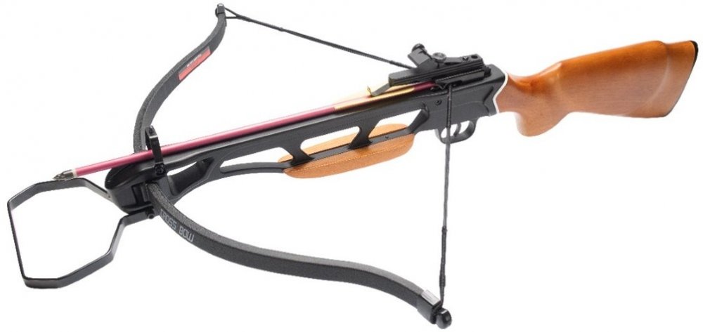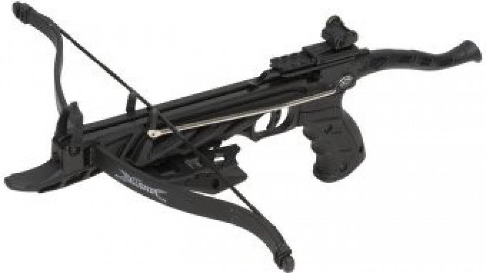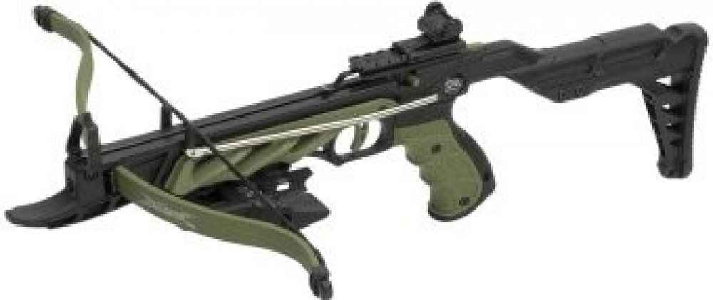 Skvělá pistolová kuše, jedná se o novou generaci pistolových kuší renomovaného výrobce Man Kung sídlícího na Taiwanu. Použití kvalitního kompozitu umožnuje přesný a hladký chod celého mechanizmu a přesný výstřel. Výrobce vyrábí pro řadu renomovaných značek sídlících v USA. Provedení je kombinací kvalitního kompozitu a kovu. Kuše je osazena napínací pákou s kovovými táhly, která umožňuje i přes solidní nátahovou sílu 80LBS snadné, přesné a rychlé natažení. Muška má optické vlákno, dobře viditelné za šera. Tato pistolová kuše je vybavena malým předpažbím pro lepší úchop a zároven jako záštitu pro prsty.
