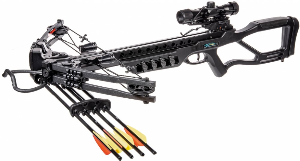 Na první pohled zaujme svým Hi-Tech designem a moderním zpracováním. Výhodou je pohodlná pažba, která padne do ramene každému střelci. Důležitou součástí je ochranný kryt na prsty. Dalším důležitým prvkem pro vaši bezpečnost je manuální pojistka, která je snadno dostupná prstem. Do kuše doporučujeme šípy o délce 20".