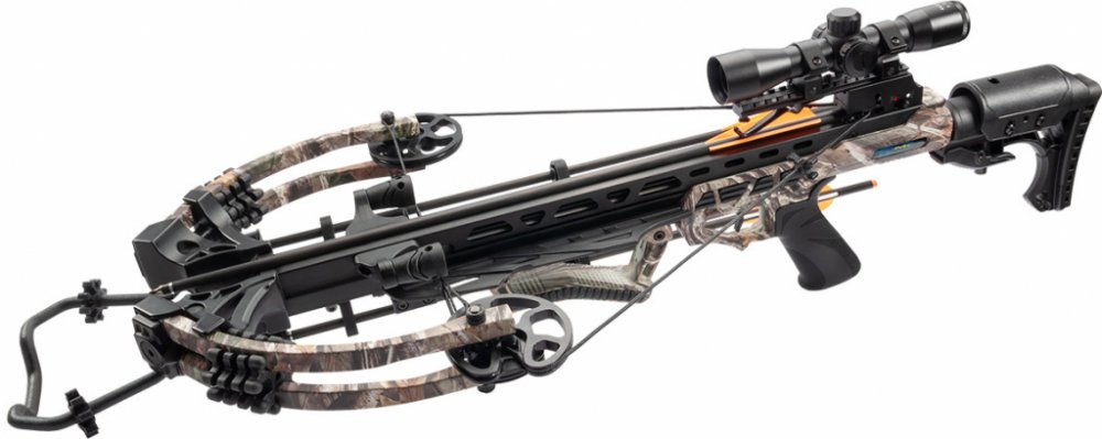 Plně nastavitelná pažba, je možné nastavit nejen předpažbí, které se pohybuje po weaver liště, ale i zadní část pažby a lícnici. Zadní část pažby vychází z podobné konstrukce jako pažba u M16 a je nastavitelná v širokém rozsahu v pěti krocích. Zadní část pažby je osazena měkkou gumovou botkou. K této kuši vzhledem k výkonu a délce nátahu doporučujeme používat zásadně carbonové šípy v délce 22" nebo na originálních šípech 20" vyměnit 100 grain hroty za těžší 125 nebo 150 grain..