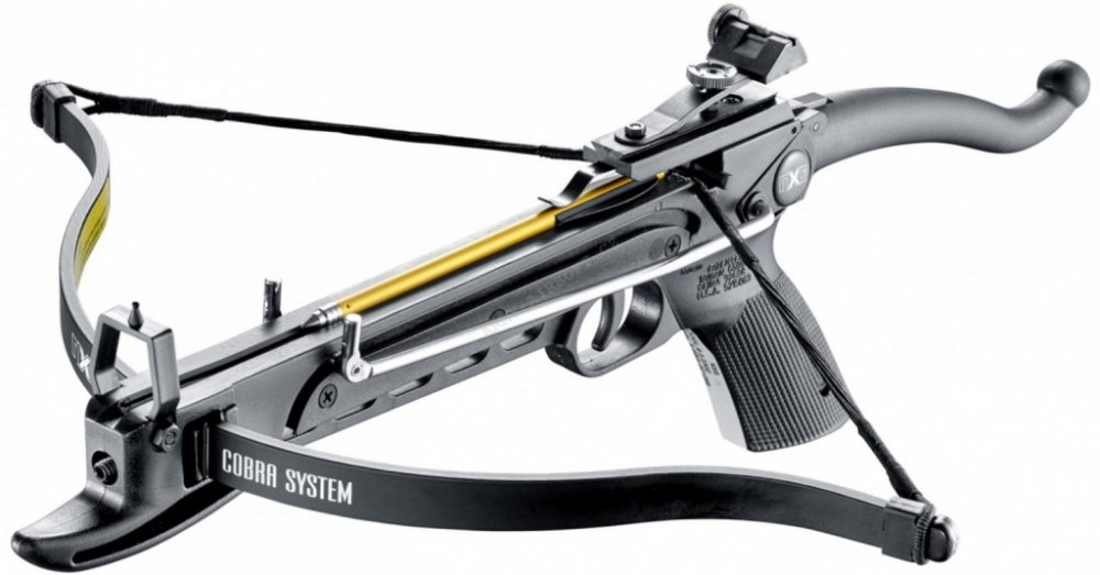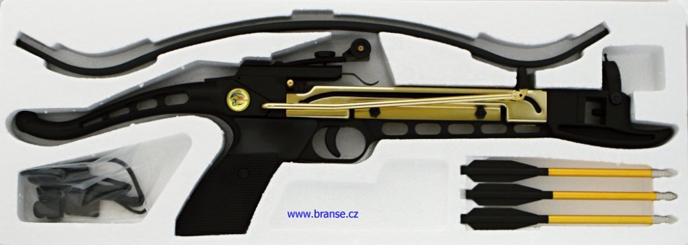 Vynikající pistolová kuše v luxusním provední. Vybrané součásti imitují zlato.