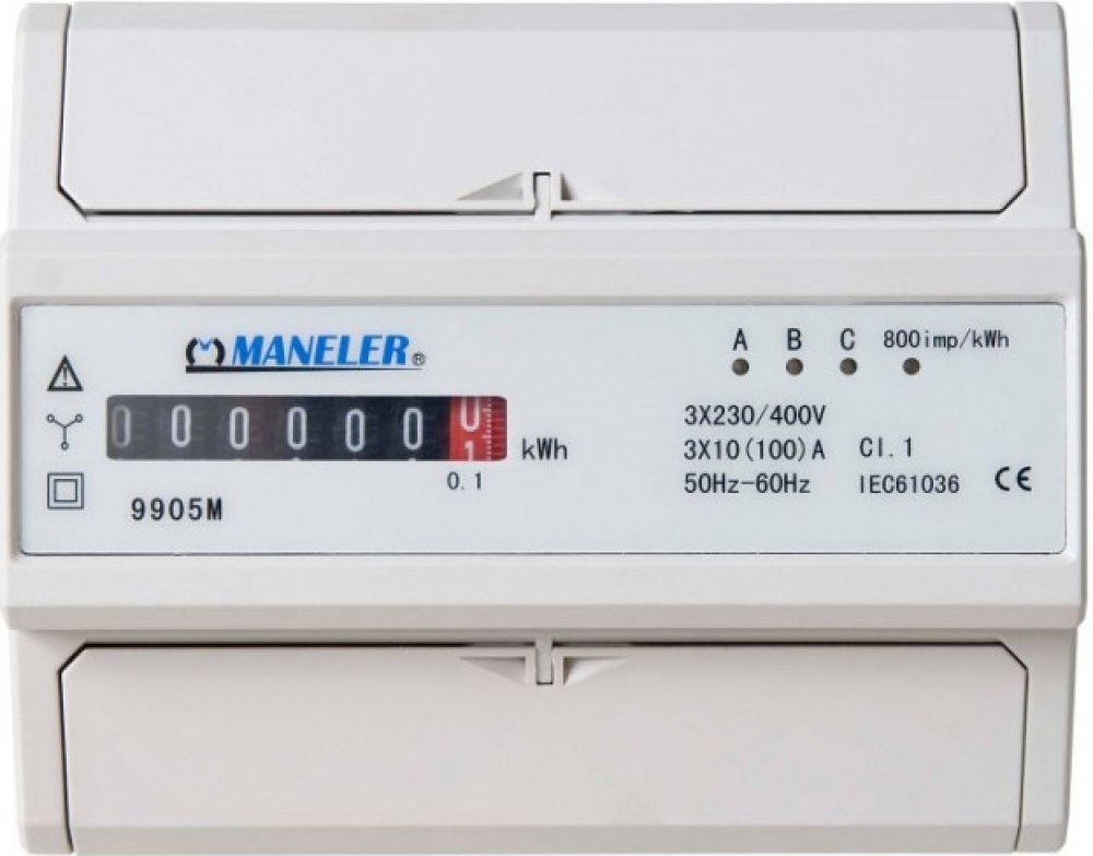 Maneler 9905M elektroměr modulový 3fazový 1 tarif mechanický 7mod podružný 10-100A Třída 1 EDIN 371L