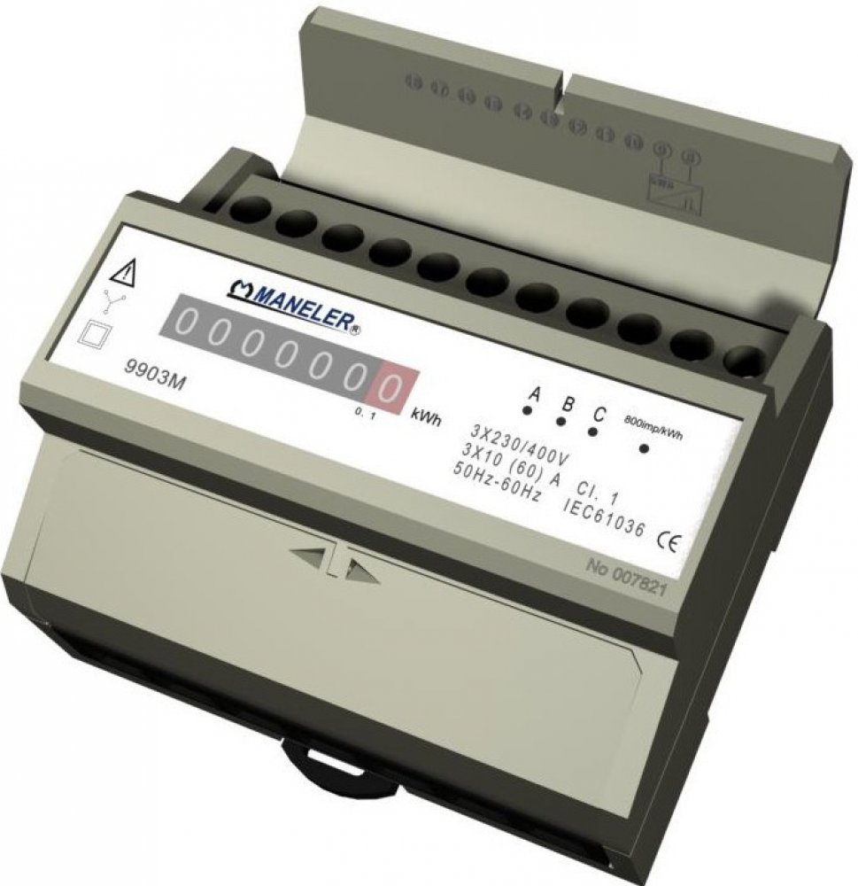 Třífázový jednosazbový elektroměr na lištu DIN, neověřený, elektromechanický číseln...