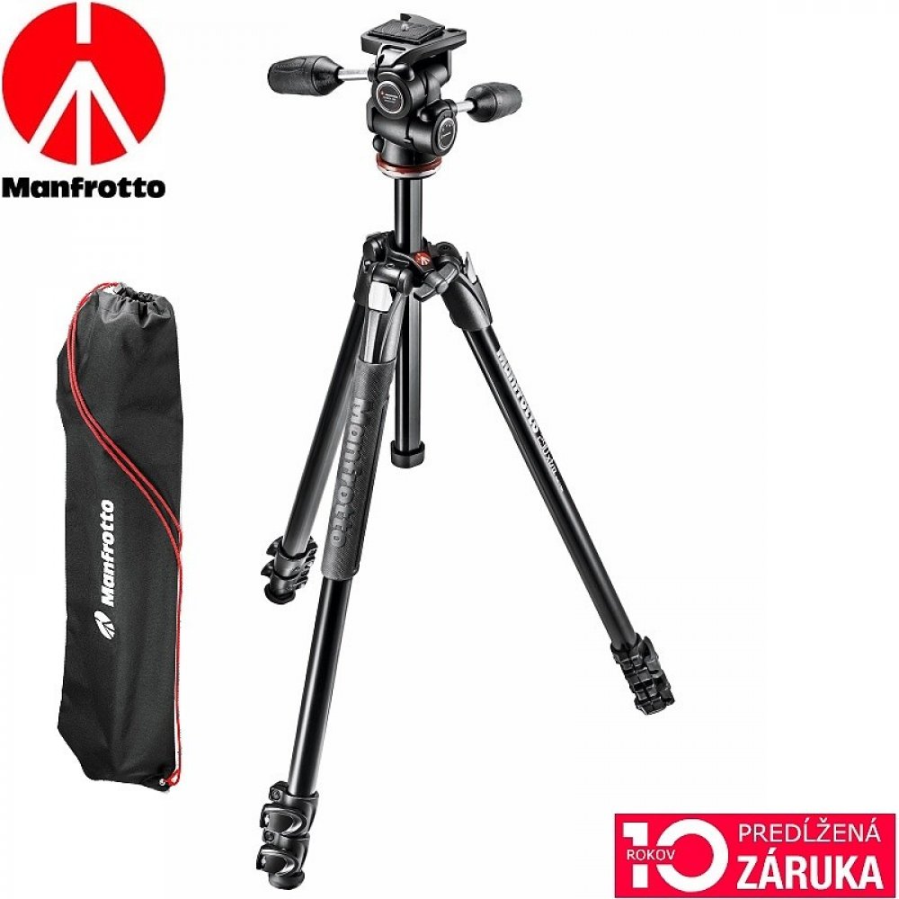 V sadě se stativem najdete také trojcestnou hlavu Manfrotto MH804-3W s rychloupínací destičkou. Hlavice je vyrobená z polymeru (ADAPTO), díky němuž je lehká a opravdu hodně vydrží. Dalším jejím plusem je speciální balancující pružina, která vám ulehčí práci s nastavením při použití dlouhých a těžkých objektivů na vašem fotoaparátu.