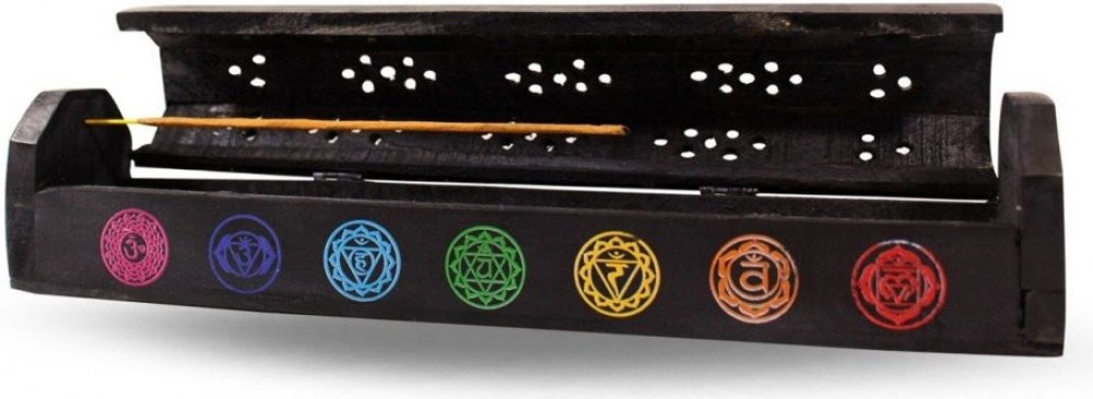 Mani Bhadra Stojan na vonné tyčinky truhlička černá Sedm čaker 30 cm