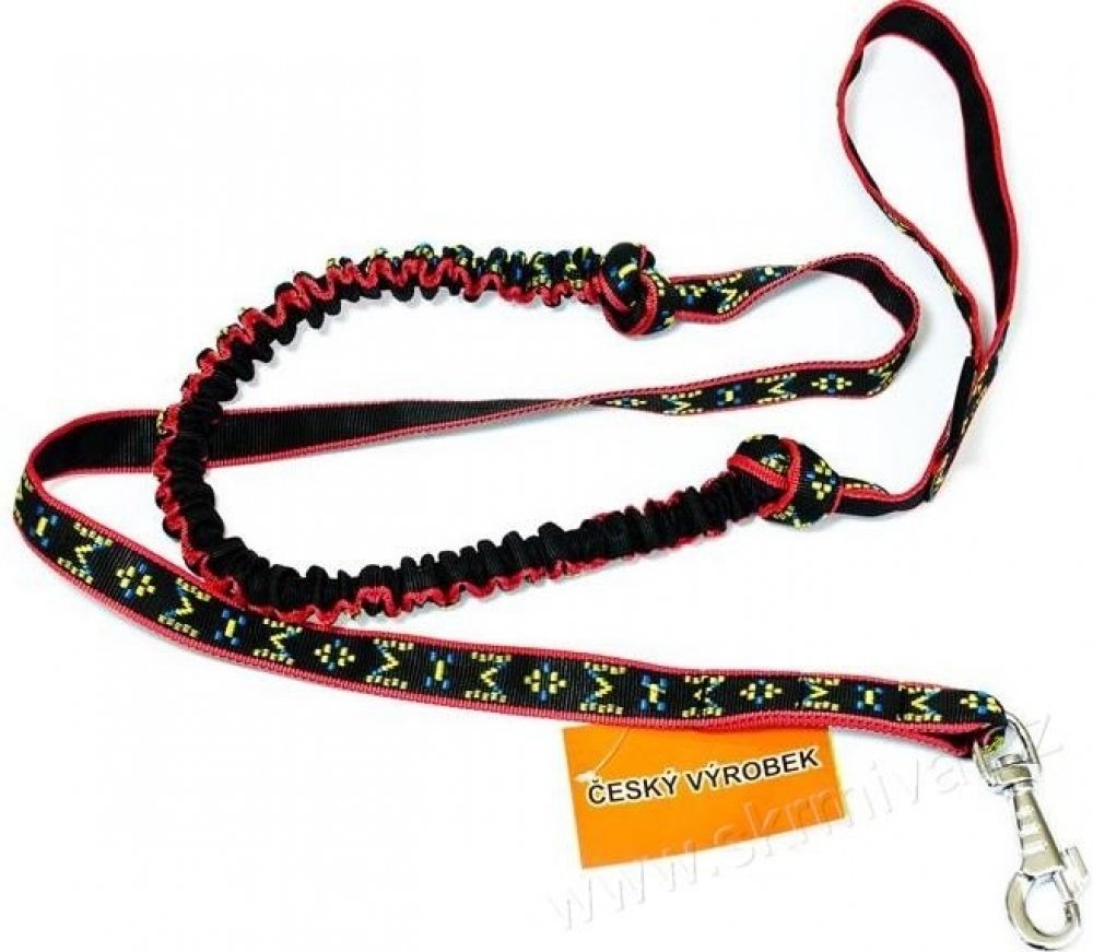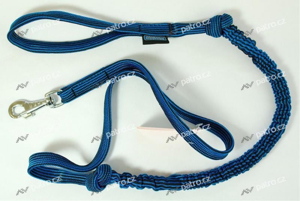 Vodítko je vybaveno pevnou litinovou karabinou a amortizérem, který tlumí případné trhnutí při chůzi se psem.