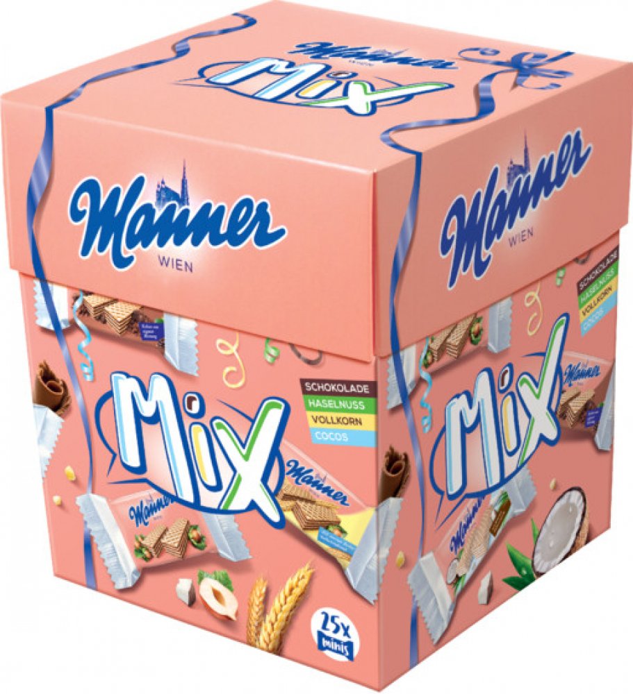Oplatky Mini Mix oplatky na zahnání chuti na sladké v novém balení vhodné na party. Balení obsahuje několik různých příchutí samostatně balených oplatků. Vždy a všude k dispozici, v praktickém balení a v neustále vysoké kvalitě provázejí oblíbené „oplatky Manner“ člověka ve všech životních situacích již po několik generací. Nechte se i vy svést a prožijte kus historie!