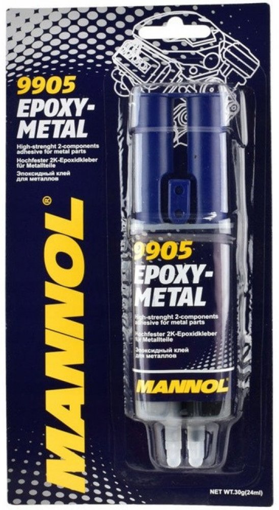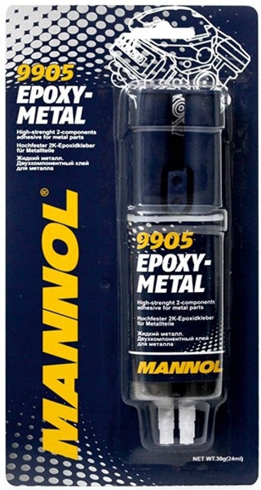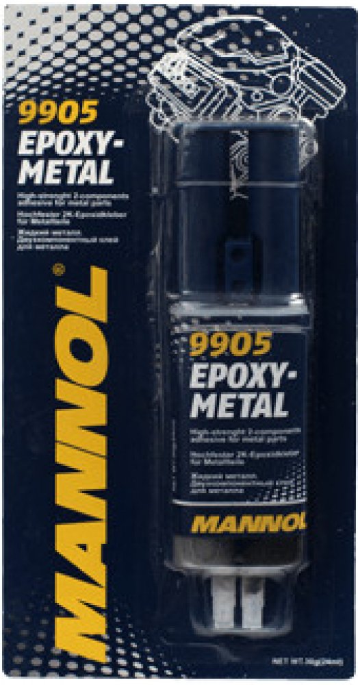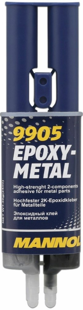 Mannol Epoxy-Metal je vysokopevnostní lepidlo bez obsahu rozpouštědel určené pro strukturální lepení kovů na kovy, jako je hliník, ocel, nerezová ocel, spolu s lepením termoplastů a kompozitních sestav.