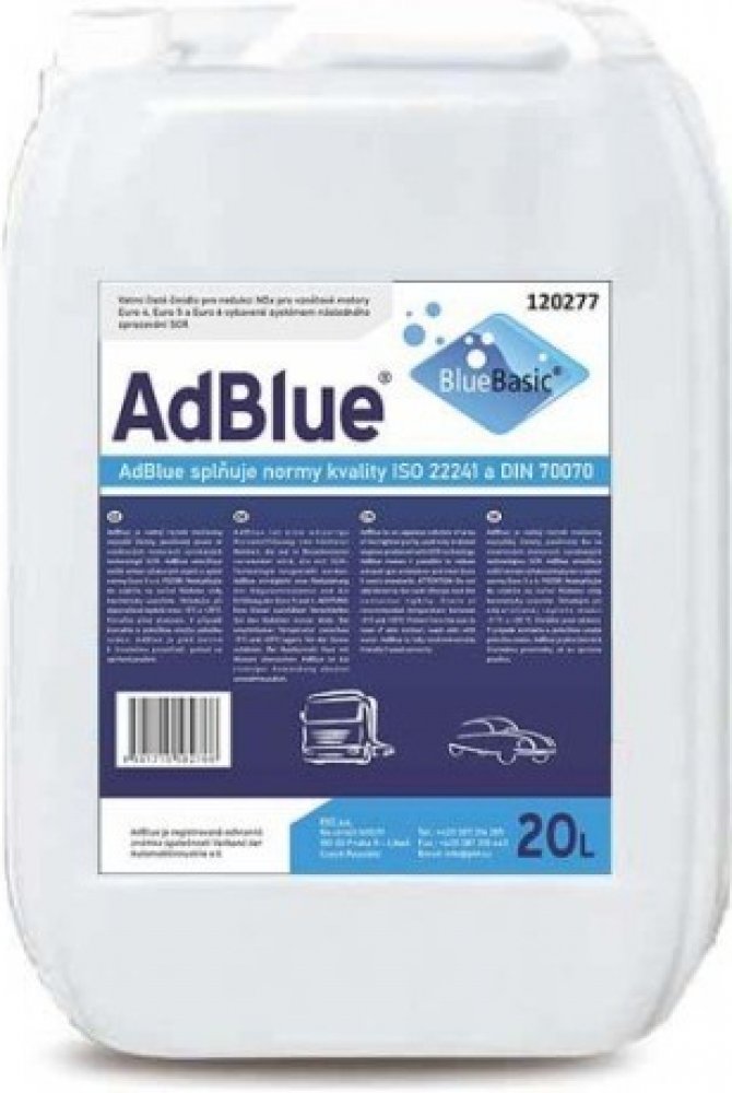AdBlue je vodný roztok močoviny nejvyšší čistoty, používaný pouze ve vznětových motorech vyrobených technologií SCR. AdBlue umožňuje snížit emise výfukových plynů a splnit normy Euro 5 a 6.