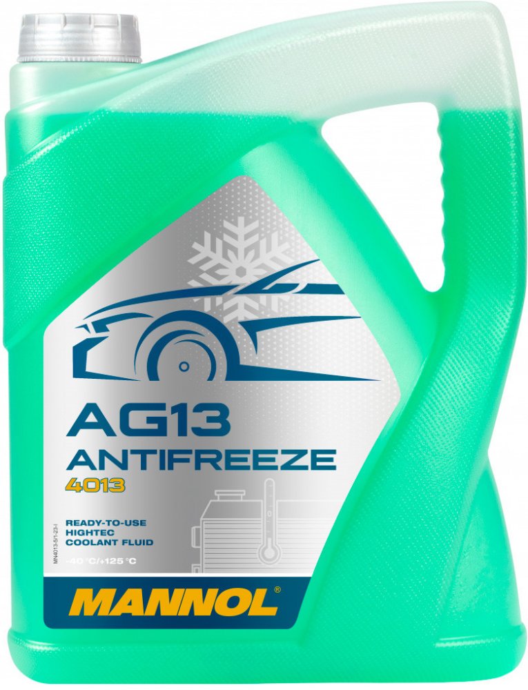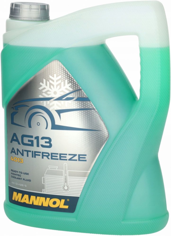 Mannol Antifreeze AG13 (-40 °C) Hightec 4013 je hybridní nemrznoucí kapalina na bázi technologie HOAT (Hybrid Organic Acid Technology), připravená k okamžitému použití bez nutnosti ředění. Tato špičková kapalina zajišťuje spolehlivou ochranu chladicího systému automobilu až do teploty -40 °C, a to po celý rok. Je navržena pro moderní chladicí systémy, které vyžadují použití antifreezu na bázi mono-ethylenglykolu, a nabízí výjimečnou ochranu kovových a slitinových částí systému proti všem formám koroze, včetně vysokoteplotní koroze hliníkových povrchů v moderních motorech.