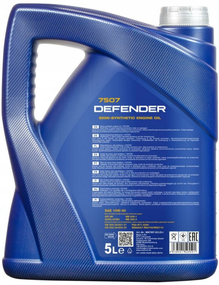 Vyvinuto na základě požadavků evropských výrobců.VLASTNOSTI- Esterová technologie a hydrosyntetická báze nejnovější generace s rozšířeným rozsahem viskozitně-teplotních vlastností zajišťují efektivní provoz motoru ve všech provozních režimech: studený start, městský režim, dálniční režim i při zvýšené zátěži (při jízdě mimo- silnice, do kopce, jízda s přívěsem, maximální zatížení) a při vysokých okolních teplotách;
