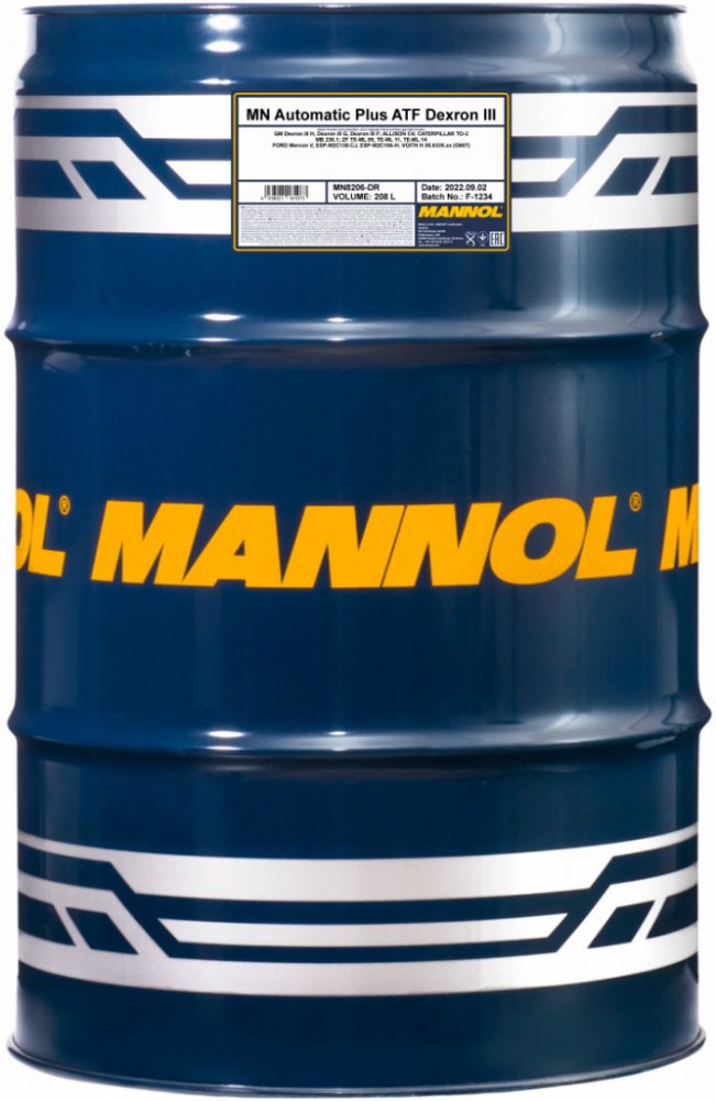 Mannol Automatic Plus ATF Dexron III 8206 je univerzální celoroční syntetická kapalina určená pro automatické převodovky, hydraulické měniče, posilovače řízení a další hydraulická zařízení včetně těch pracujících za náročných podmínek, například v nákladních vozech a terénních vozidlech. Tento olej zajišťuje plynulý chod převodovky, snižuje opotřebení a prodlužuje životnost převodových systémů, čímž přispívá k úsporám paliva. Jeho složení splňuje požadavky GM a Ford a poskytuje optimální výkon při nízkých teplotách až do -45 °C, stejně jako za extrémního zatížení a vysokých teplot v letním období.