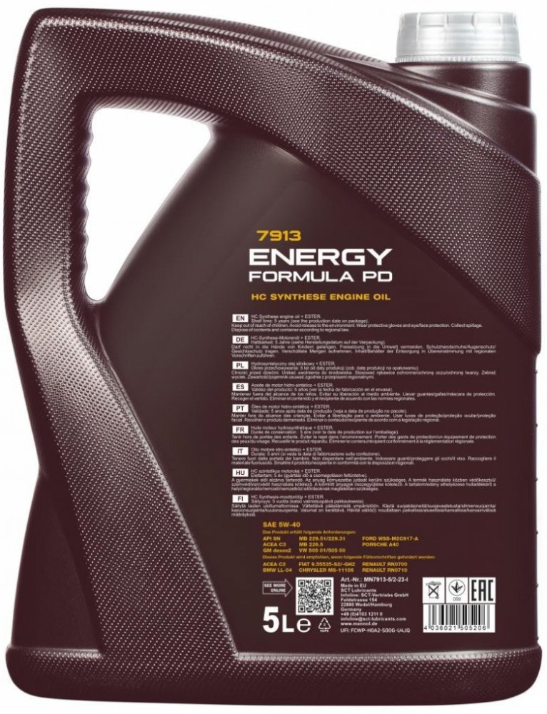 MANNOL ENERGY FORMULA PD 5W-40 je univerzální, inovativní a energeticky úsporný, plně syntetický motorový olej prémiové kvality.