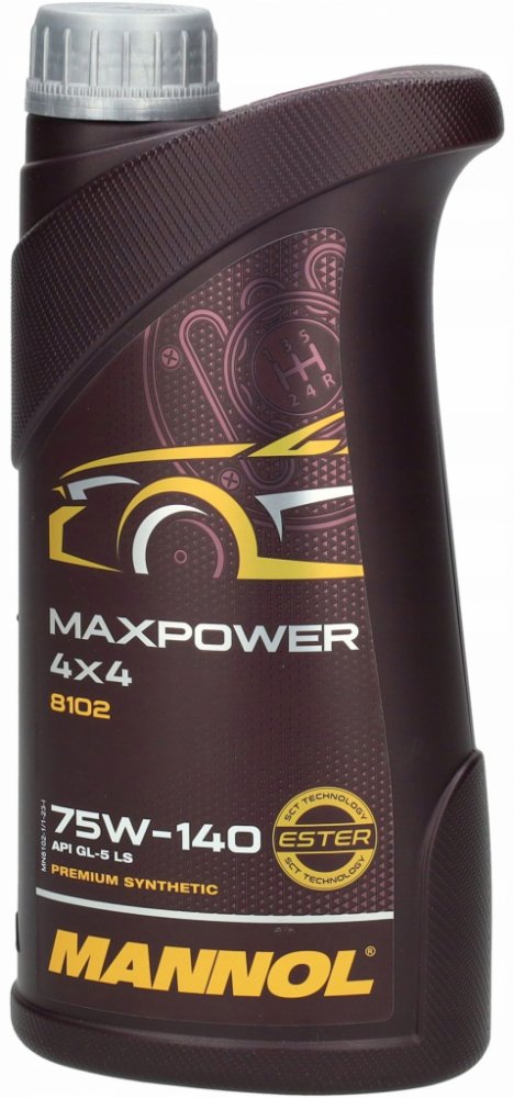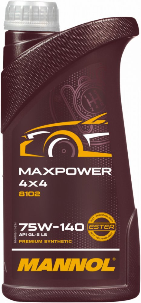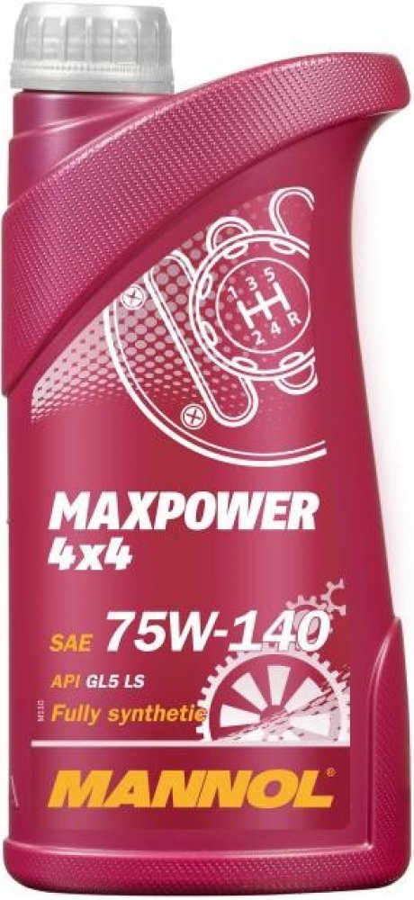 Mannol Maxpower 4x4 75W-140 1LJe plně syntetický vysoce kvalitní převodový olej pro mazání všech typů diferenciálu, včetně těch s vyšším třením, kde je použit olej "s omezeným prokluzem Oil API GL5". Poskytuje ochranu před opotřebením. Je speciálně navržen pro silně zatížené přenosy sportovní převodovky s pohonem všech čtyř kol vozidla. specifikace: SAE 75W-140, API GL-5 LS, MIL-L 2105 D, MAN 342, SCANIA STO 1:0