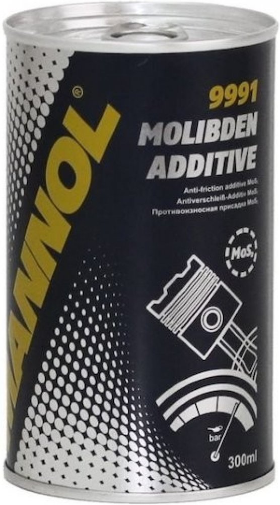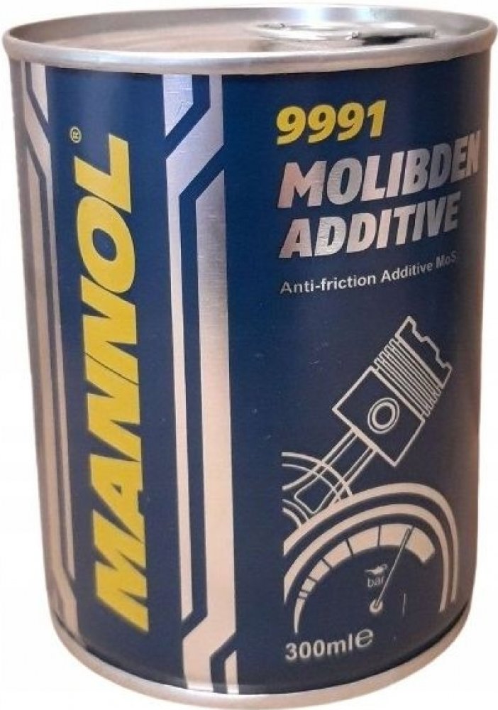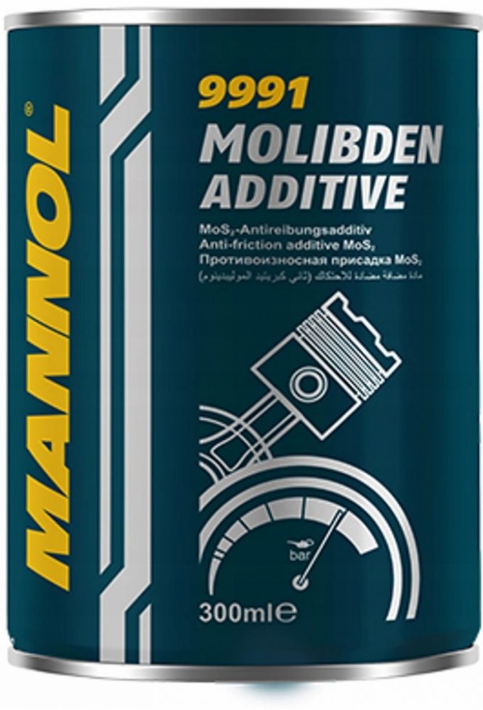 MANNOL 9991 Molibden Additive, 350mlAditivum do motorového a/nebo převodového (pro mechanické převodovky) oleje pro snížení tření a opotřebení, které zajišťuje extrémně stabilní koloidní disperze přírodního disulfidu molybdeničitého (MoS2) v základovém oleji. Na všech třecích plochách vytváří silný vrstvený film s nepřekonatelným účinkem proti tření, který přetrvává i při úplném úniku oleje. Vlastnosti produktu:Účinně snižuje koeficient tření, čímž snižuje točivý moment a následně i energetické ztráty, což umožňuje výrazně šetřit palivo;Snižuje opotřebení a zabraňuje zaseknutí i při vysokých tlacích a zatíženích, čímž výrazně prodlužuje životnost motoru a/nebo součástí mechanické převodovky;Má vysokou tepelnou stabilitu, odolává vysokým teplotám - do 350 °C;Nevytváří usazeniny a sedimenty;Kompatibilní se všemi filtry (neucpává jejich póry) a těsněními;Mísí se se všemi druhy olejů (minerální, syntetické atd.) a je vhodný pro všechny čtyřdobé benzínové a naftové motory (atmosférické nebo přeplňované), se systémy úpravy výfukových plynů nebo bez nich;Zabraňuje poškození motoru a/nebo převodovky v důsledku extrémních okolností (únik oleje, velmi vysoké zatížení, přehřátí atd.);Snižuje hluk motoru a/nebo převodovky;Zvláště se doporučuje pro zařízení předchozí generace.Pozor! Disulfid molybdeničitý není v některých jednotkách použitelný, což je vždy uvedeno v návodu k obsluze zařízení. Pro správnou aplikaci aditiva si pozorně přečtěte návod k obsluze zařízení! Nepoužívejte v automatických převodovkách nebo v převodovkách s mokrou spojkou! Použití: Přidejte do motorového nebo převodového oleje v libovolnou dobu. Doporučeno pro pravidelné používání: při každé výměně oleje přidejte do oleje čerstvé aditivum. Obsah kanystru 0,35 l je dostatečný pro olejový systém o objemu až 5 litrů.