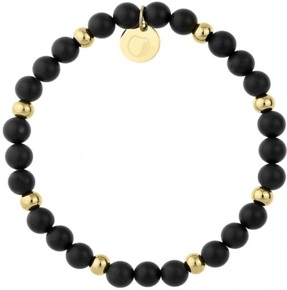 Manoki Korálkový náramek Cecilia Gold černý onyx chirurgická ocel BA670GB Černá