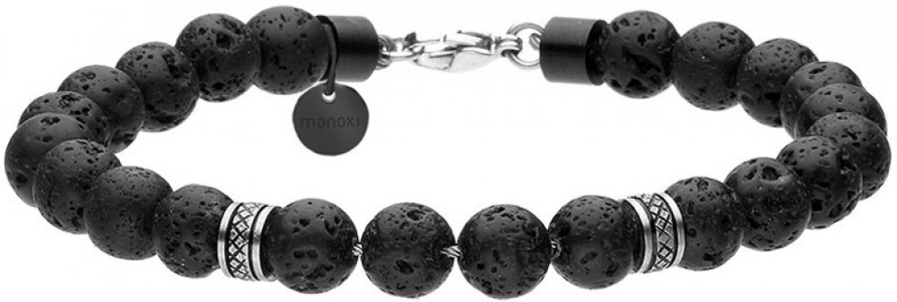 Manoki korálkový náramek Miquel lávový kámen chirurgická ocel BA793B černá