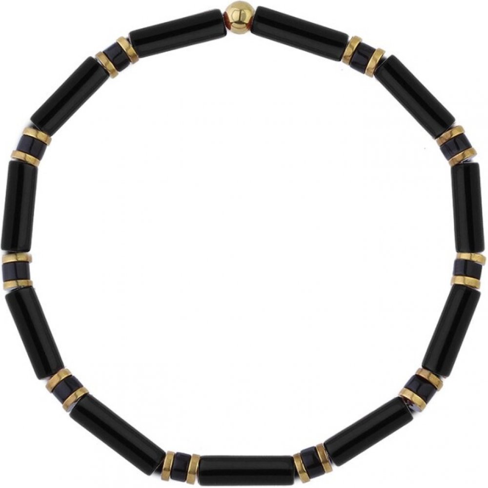 Luxusní pánský náramek v černo-zlatém provedení spojuje eleganci s hlubokou symbolikou přírodních kamenů. Dominantní černý onyx dodává náramku nadčasový vzhled a zároveň představuje sílu, stabilitu a sebevědomí. V kombinaci se zlatým hematitem vzniká kontrast, který zaujme na první pohled.Zlatý hematit je nejen vizuálně výrazný, ale zároveň symbolizuje odvahu a odolnost. Spolu s onyxem tvoří harmonickou dvojici, která skvěle doplňuje jak formální, tak volnočasový outfit. Jemný kovový lesk zlaté přidává šperku sofistikovaný nádech, aniž by působil příliš okázale.Tento náramek je ideální pro muže, kteří si zakládají na detailu, kvalitě a sebejistém stylu. Hodí se jak pro každodenní nošení, tak i pro speciální příležitosti – od pracovních schůzek až po večerní setkání.